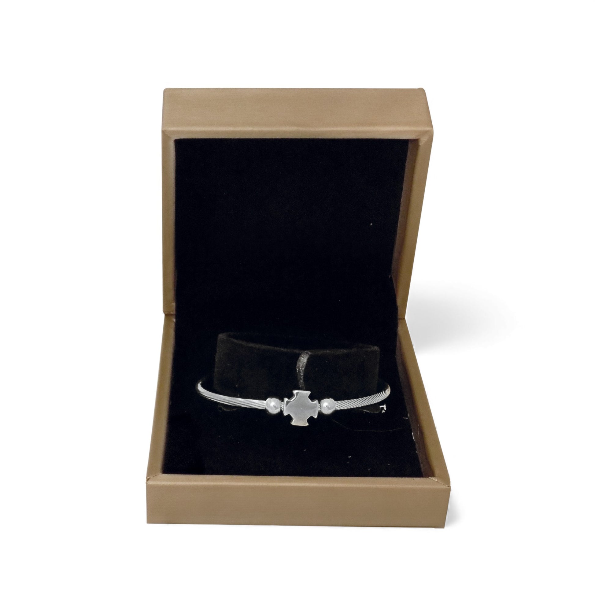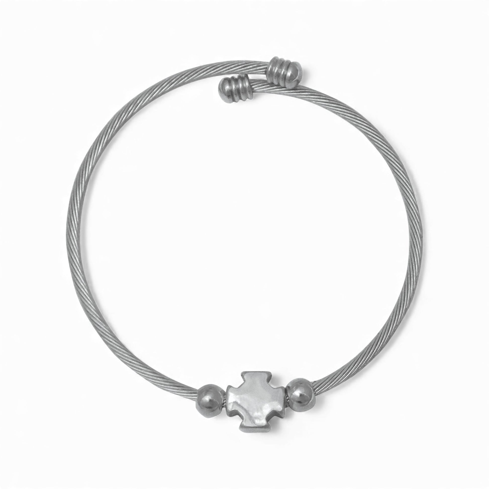 Κομψό ατσάλινο βραχιόλι, ανοιγόμενο για εύκολη εφαρμογή και άνετη χρήση όλη την ημέρα.