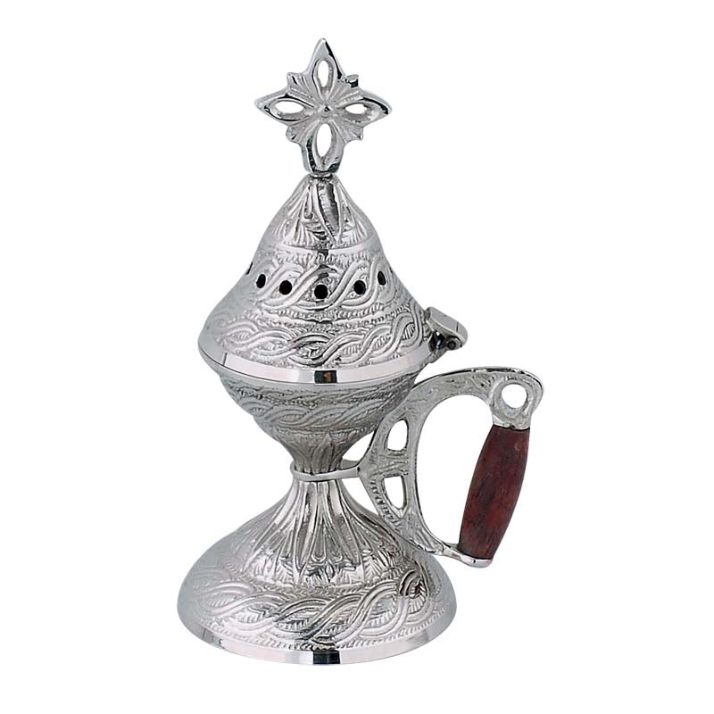 Θυμιατό Μπρούτζινο Επιτραπέζιο Ασημί - Σκαλιστό Ξύλινη
