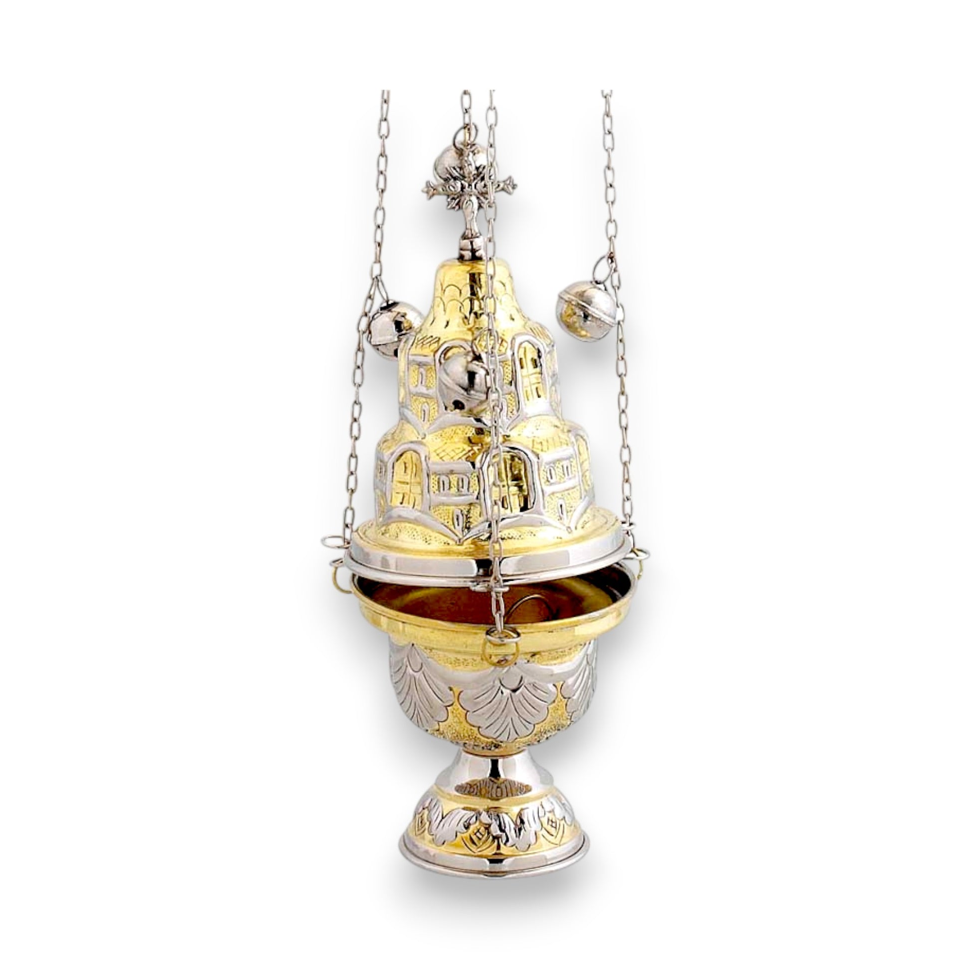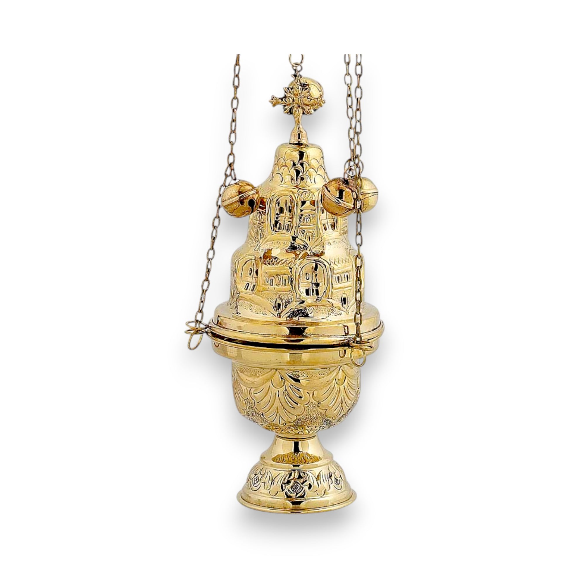 Παραδοσιακό μπρούτζινο ιερατικό θυμιατό, κατασκευασμένο με λεπτομέρεια, υψηλή αντοχή, προσεγμένο φινίρισμα και παραδοσιακή τεχνοτροπία.