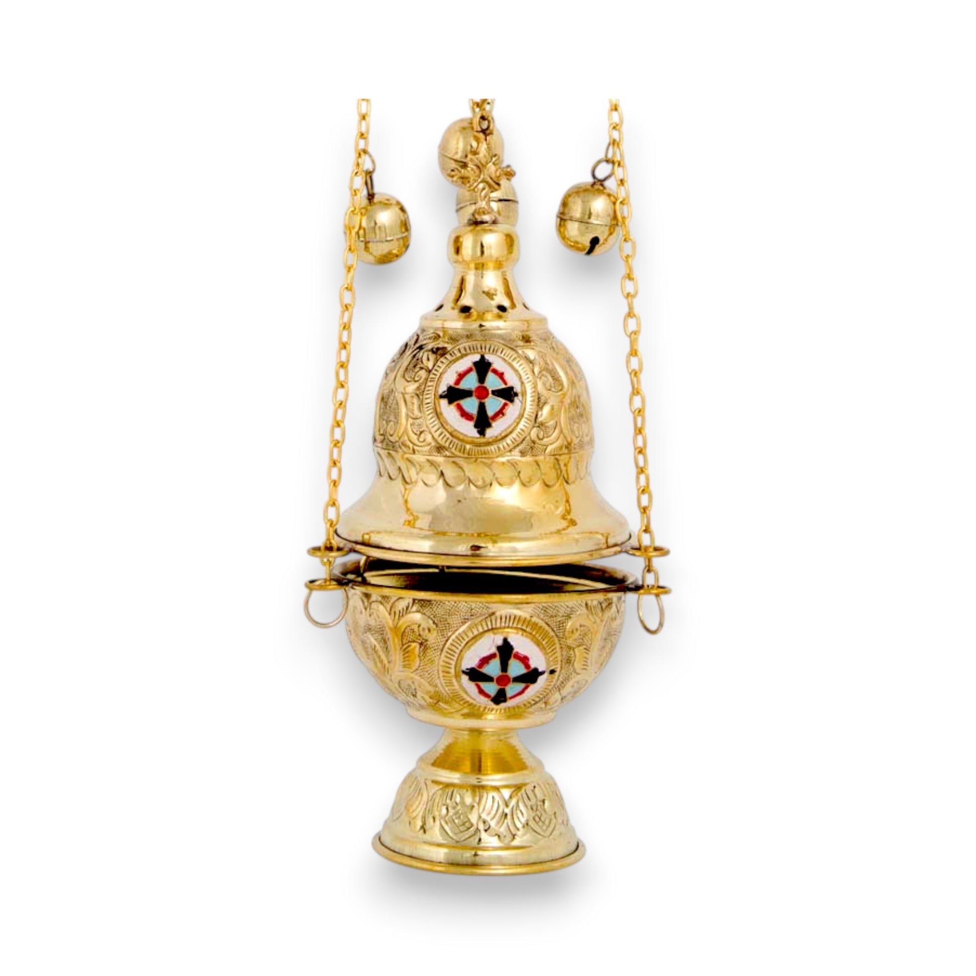 Παραδοσιακό μπρούτζινο ιερατικό θυμιατό, κατασκευασμένο με λεπτομέρεια, υψηλή αντοχή, προσεγμένο φινίρισμα και παραδοσιακή τεχνοτροπία.