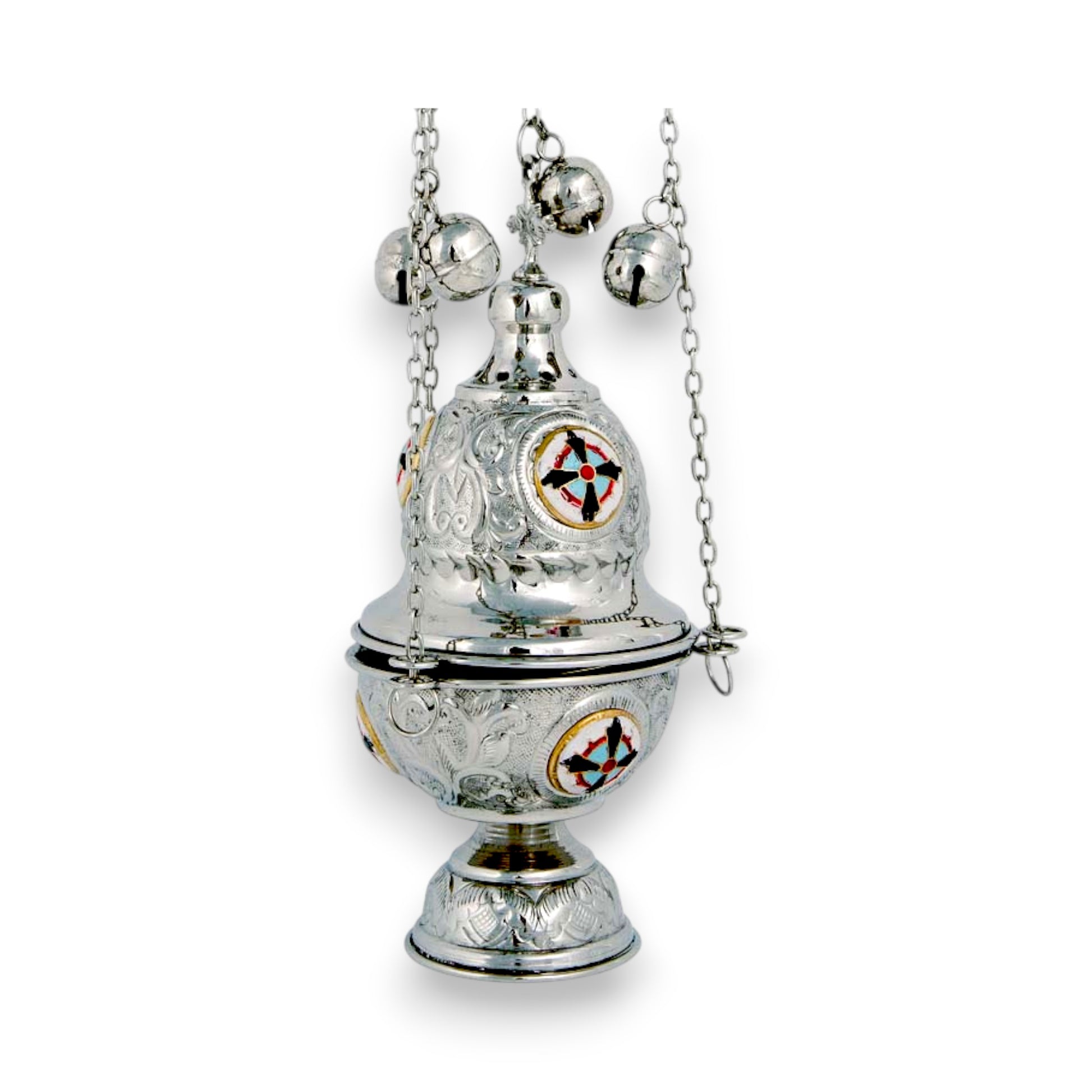 Ιερατικό Θυμιατό Επινικελωμένο Σκαλιστό Με Σμάλτο - 2 Χρώματα