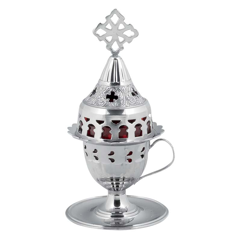 Καντήλι Μπρούτζινο Με Πιατάκι Λαβή Ασημί - Επιτραπέζιο