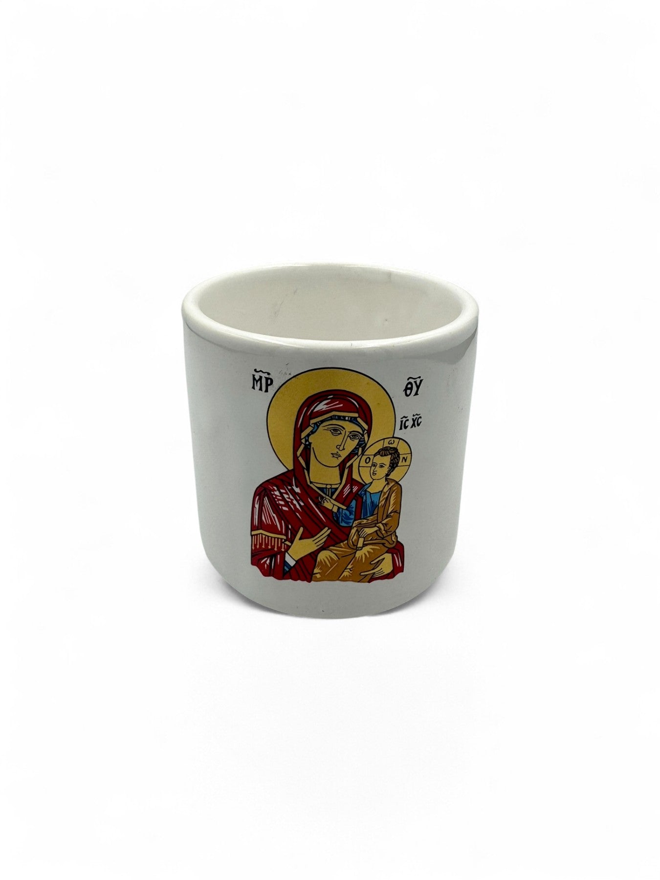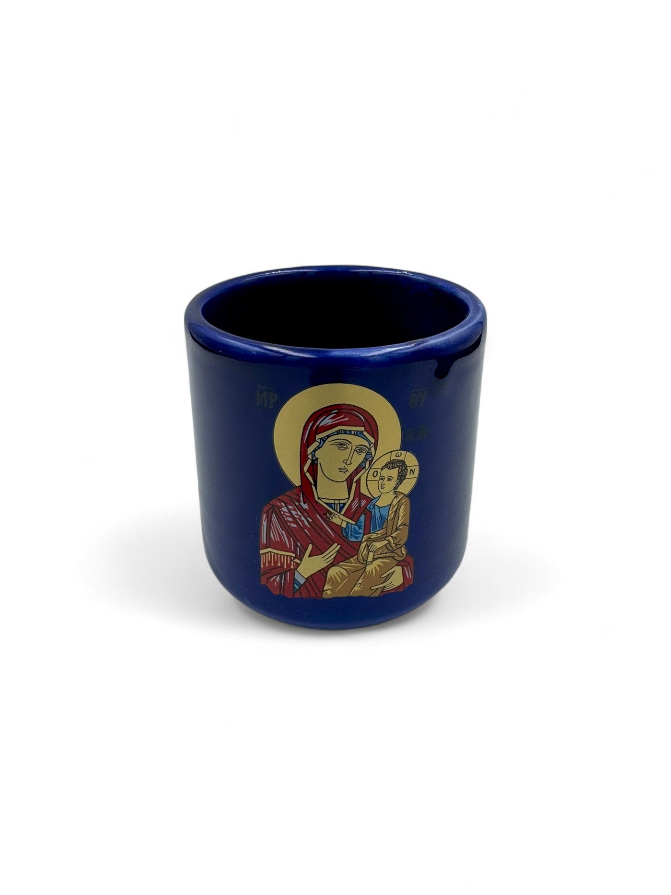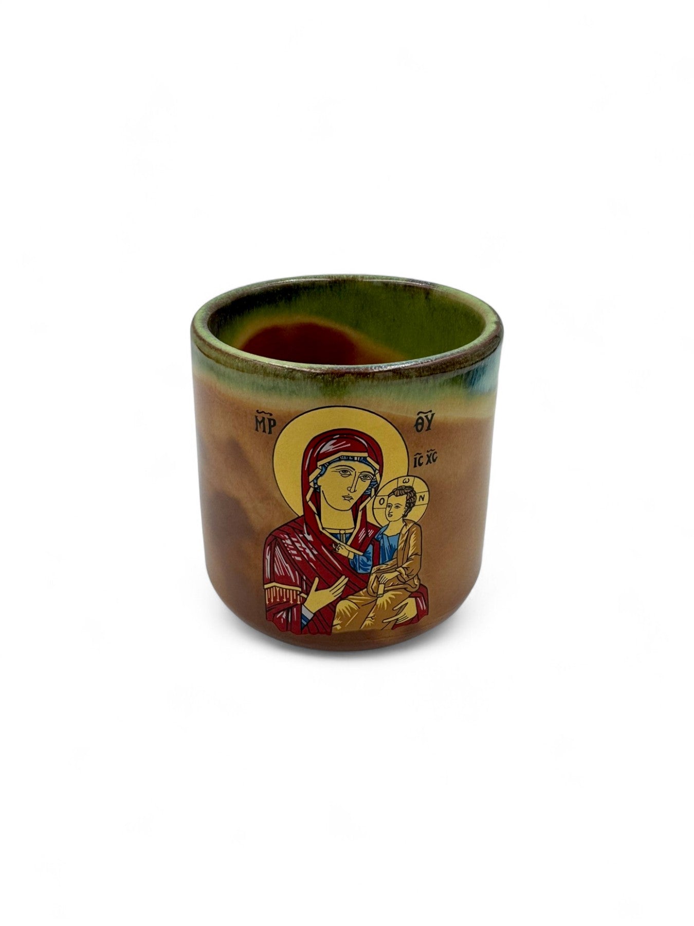 Χειροποίητη πήλινη καντόκουπα υψηλής ποιότητας, διακοσμημένο με την ιερή μορφή της Παναγίας .