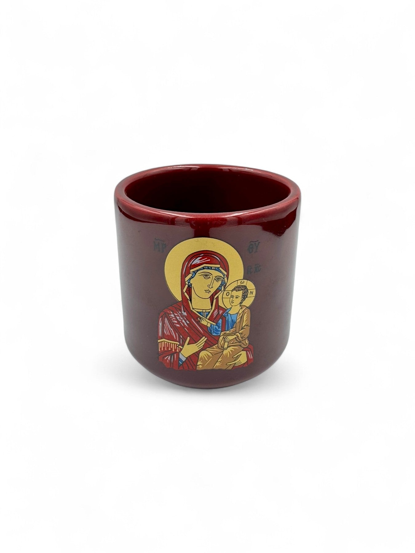 Καντηλόκουπα Μπορντό Πήλινη με απεικόνιση Παναγία