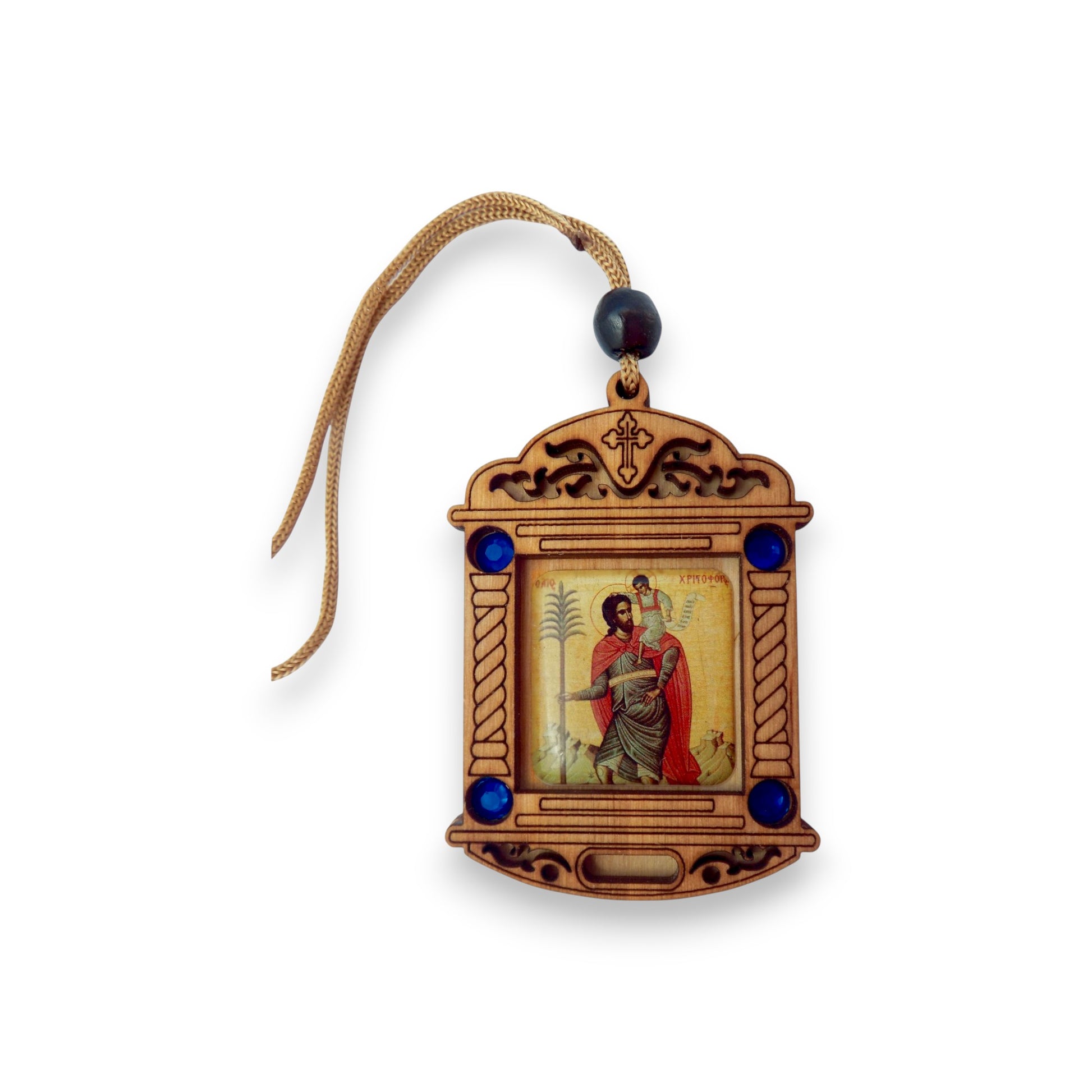 Κρεμαστό Ξύλινο Μπλε Χάντρα - Άγιος Χριστόφορος