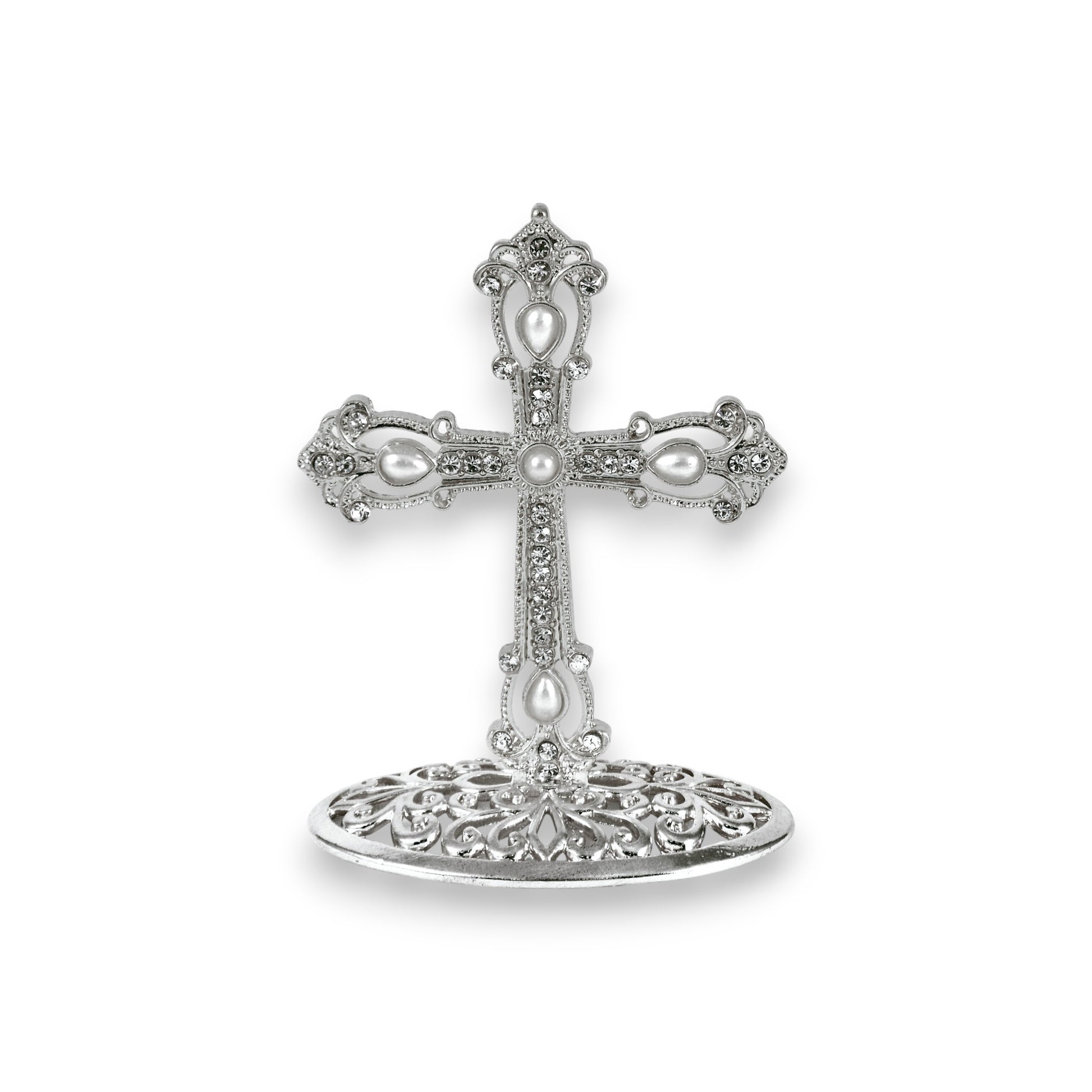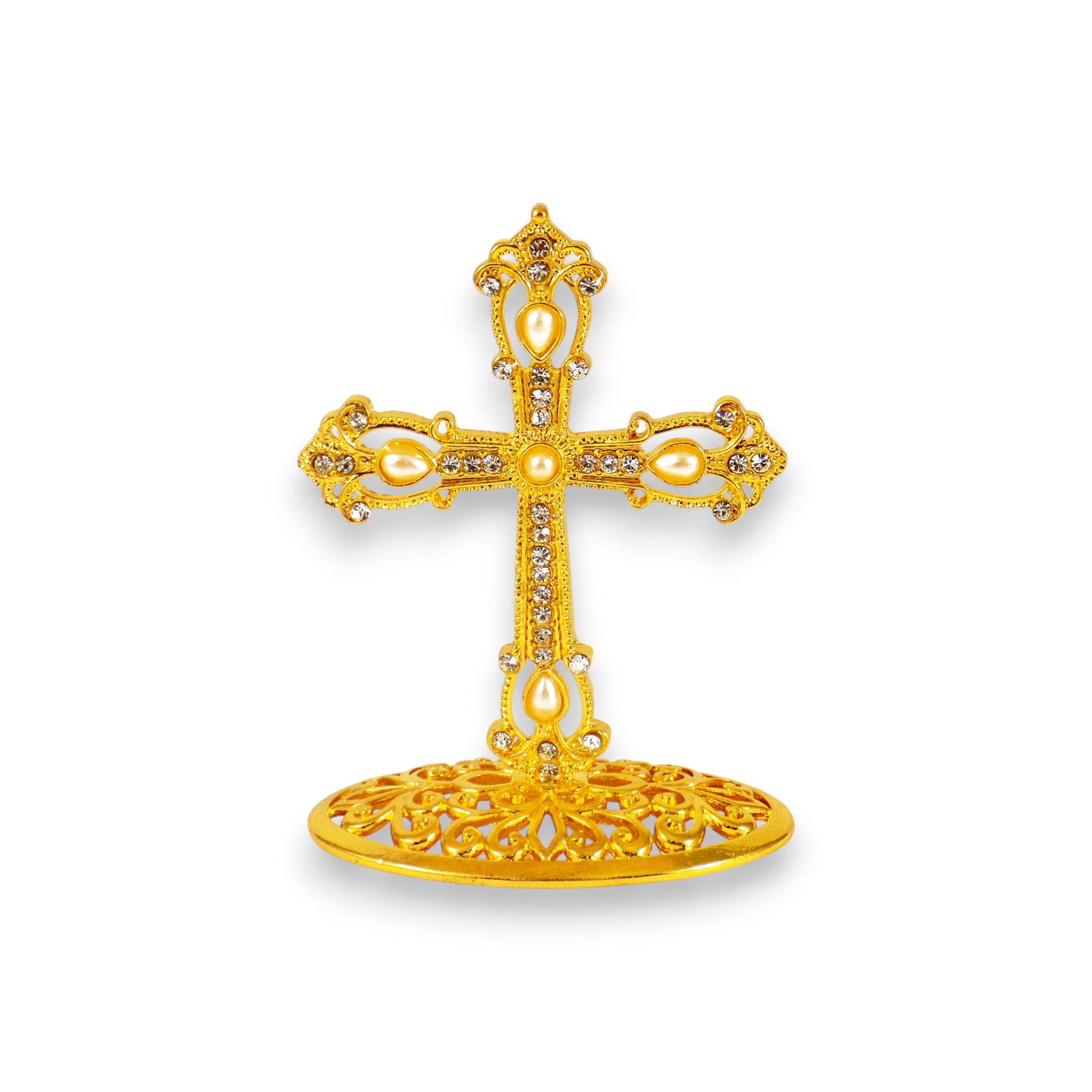 Κομψός μεταλλικός επιτραπέζιος σταυρός, κατάλληλος για το σπίτι, το γραφείο, το εικονοστάσι ή ως ευλογημένο δώρο.