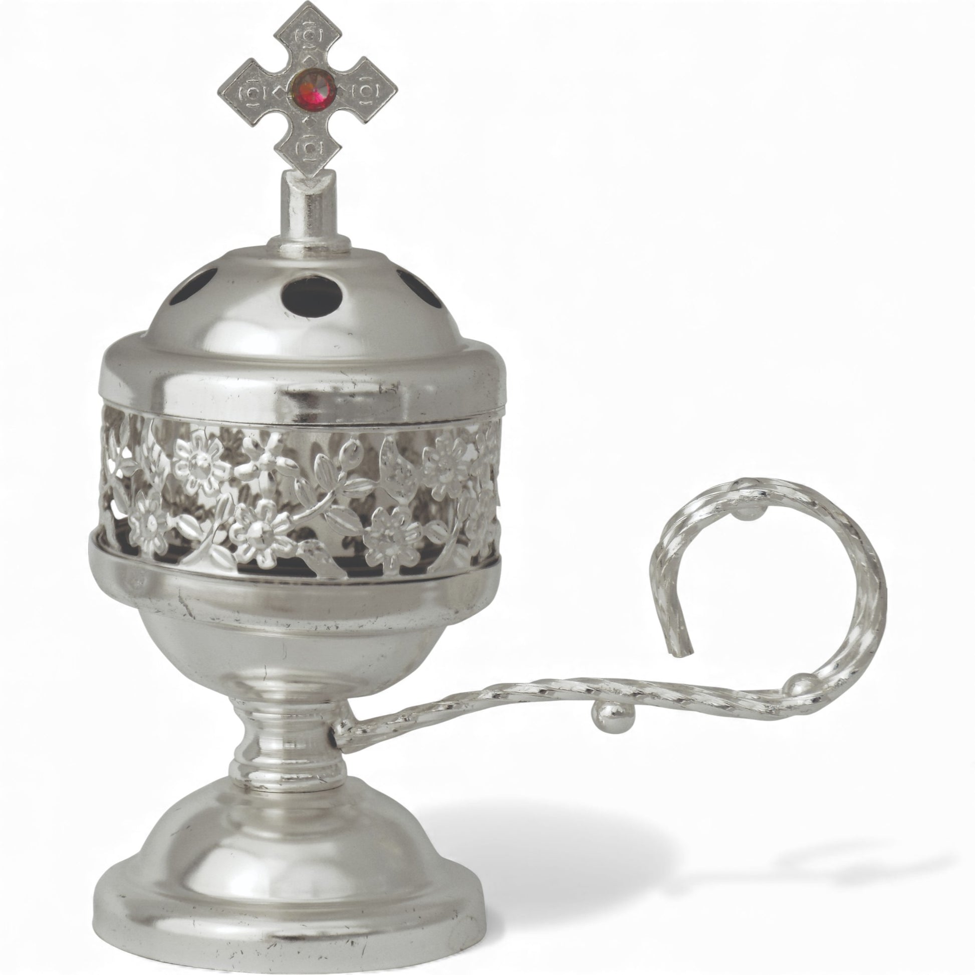 Κλασικό μεταλλικό επιτραπέζιο θυμιατό, ιδανικό για το σπίτι, το εικονοστάσι και κάθε χώρο προσευχής.