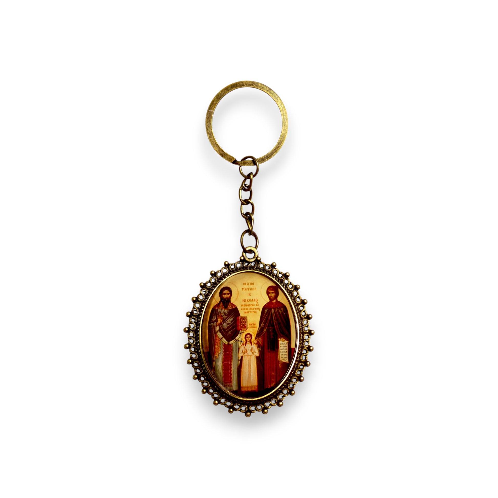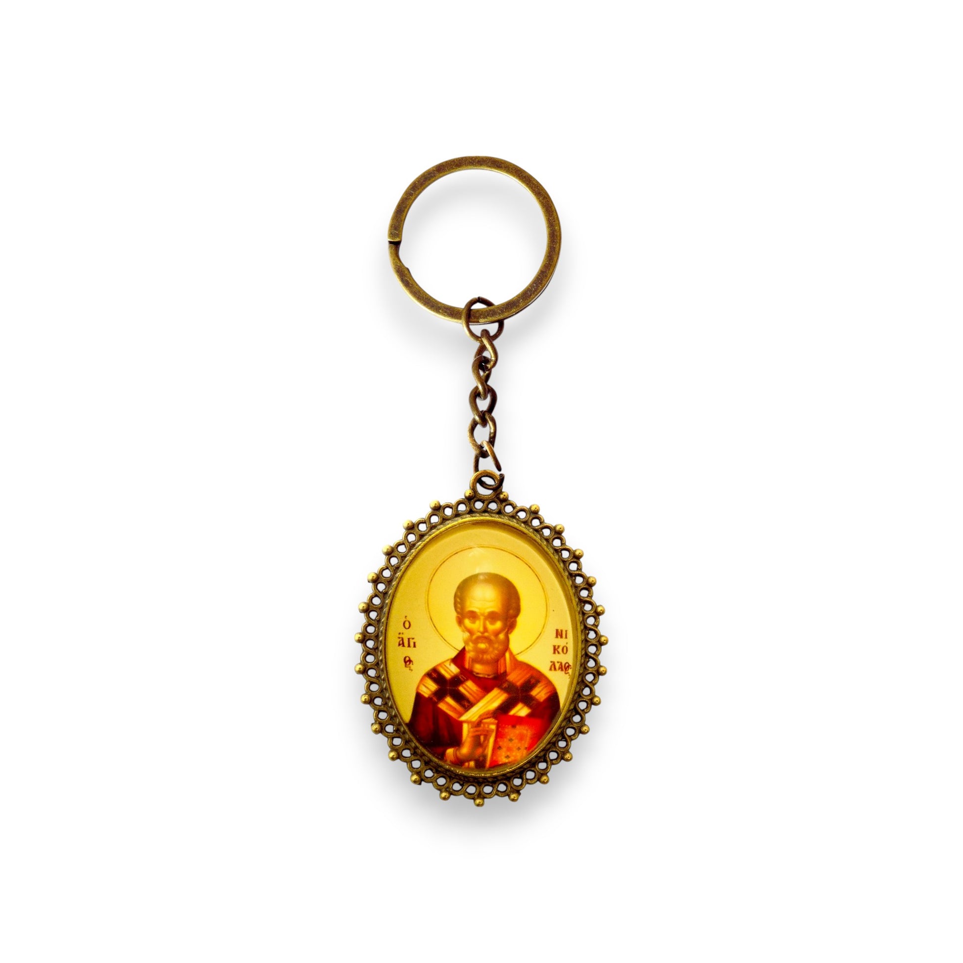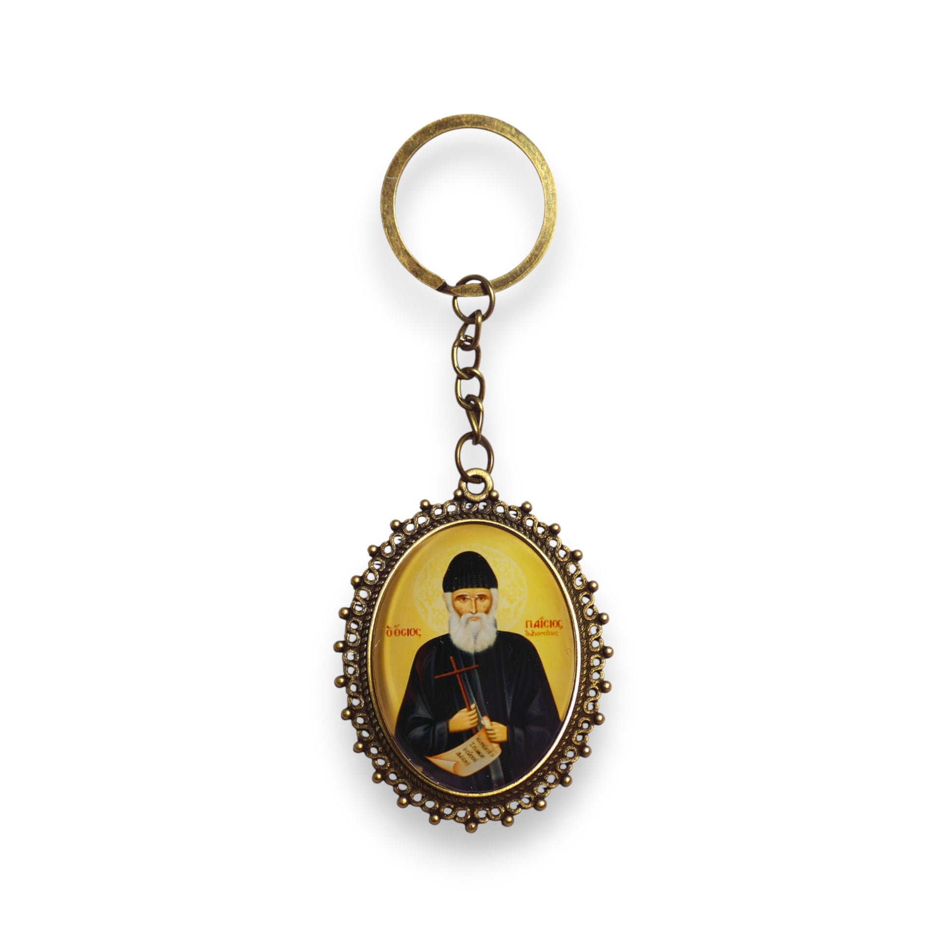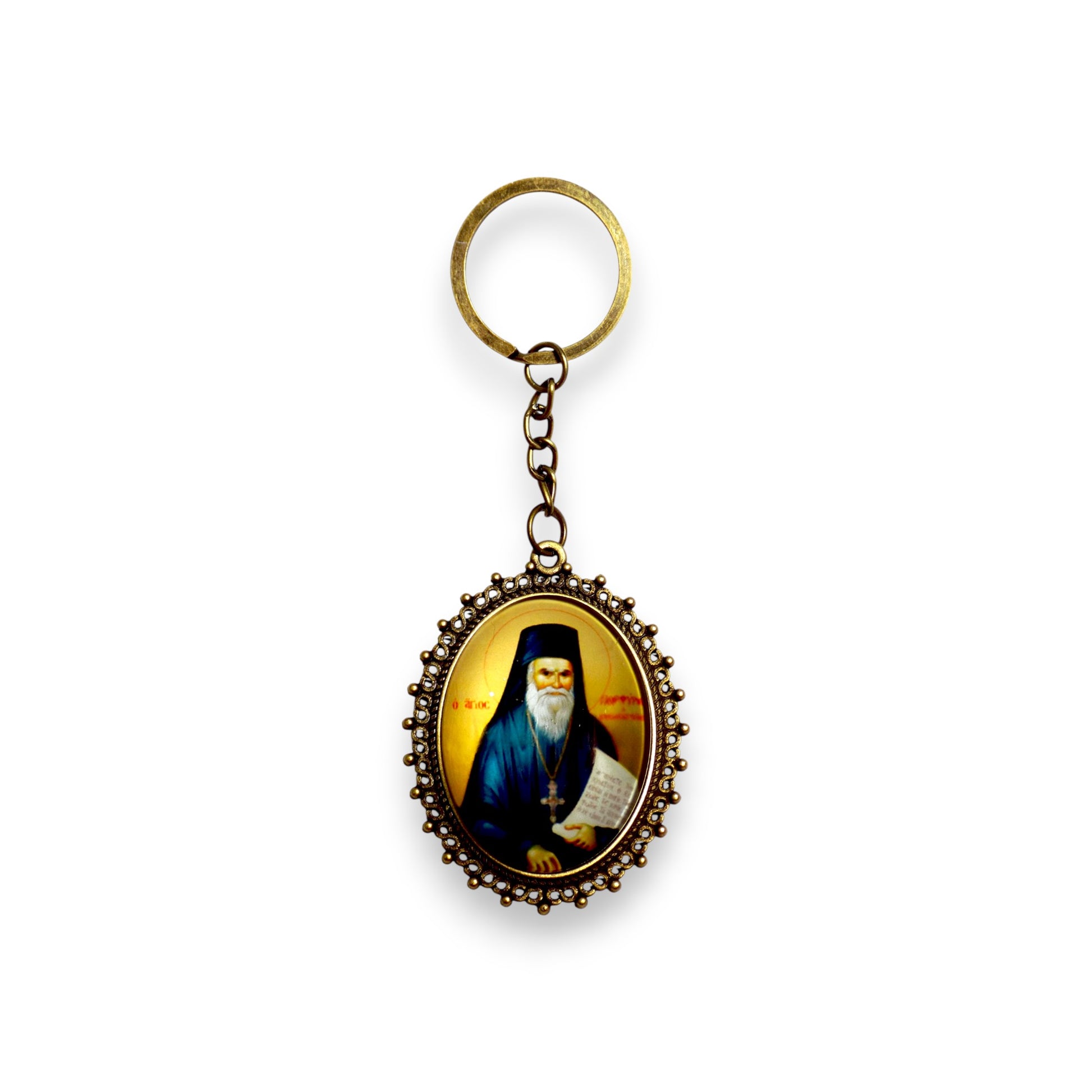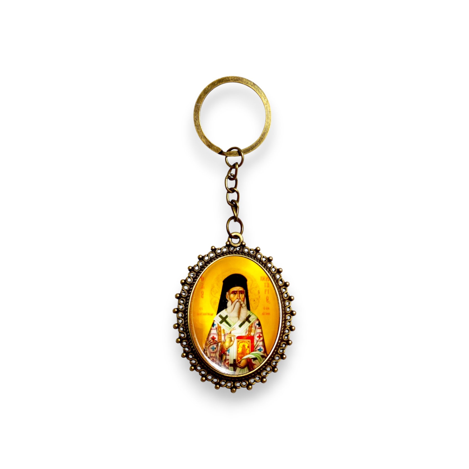 Μεταλλικό μπρελόκ με επικάλυψη ρητίνης και ζωντανή εκτύπωση Αγίων, ιδανικό για καθημερινή χρήση και ως μικρό ευλογημένο δώρο.