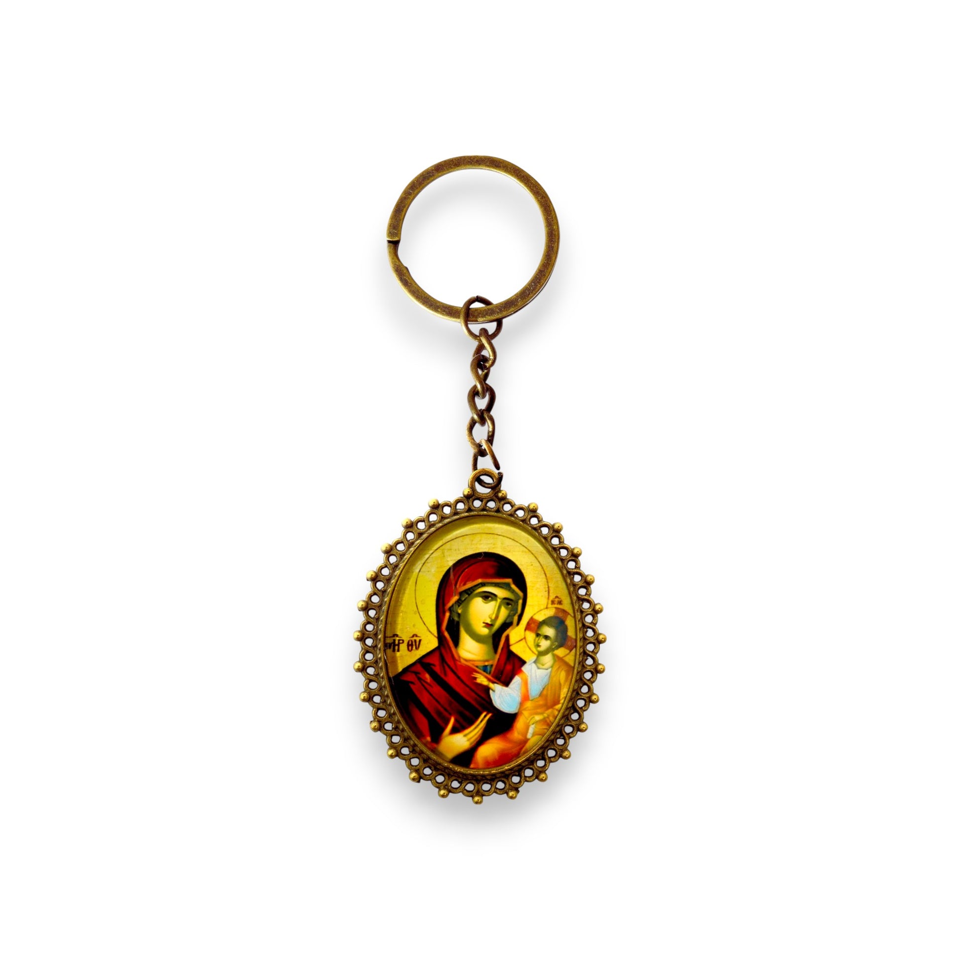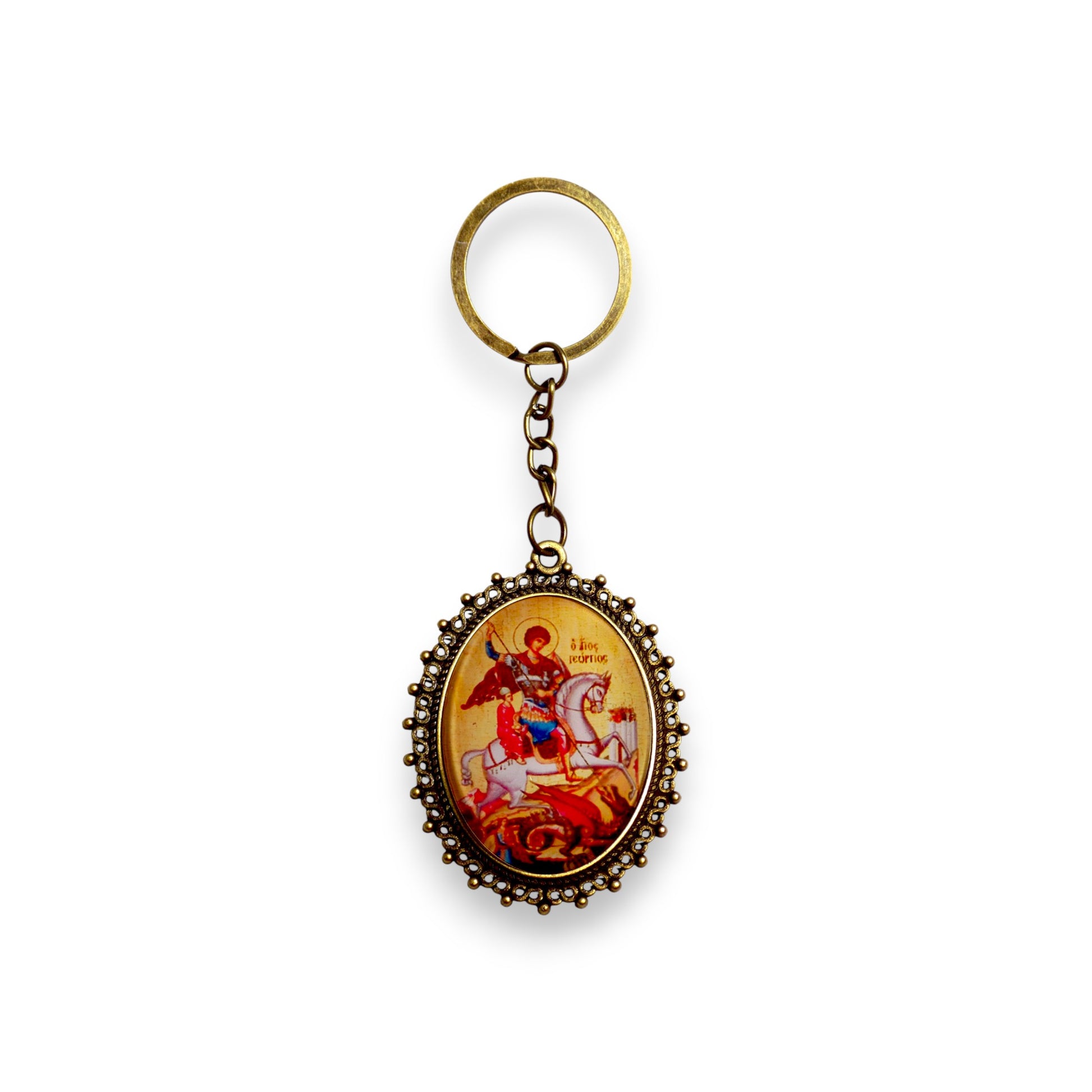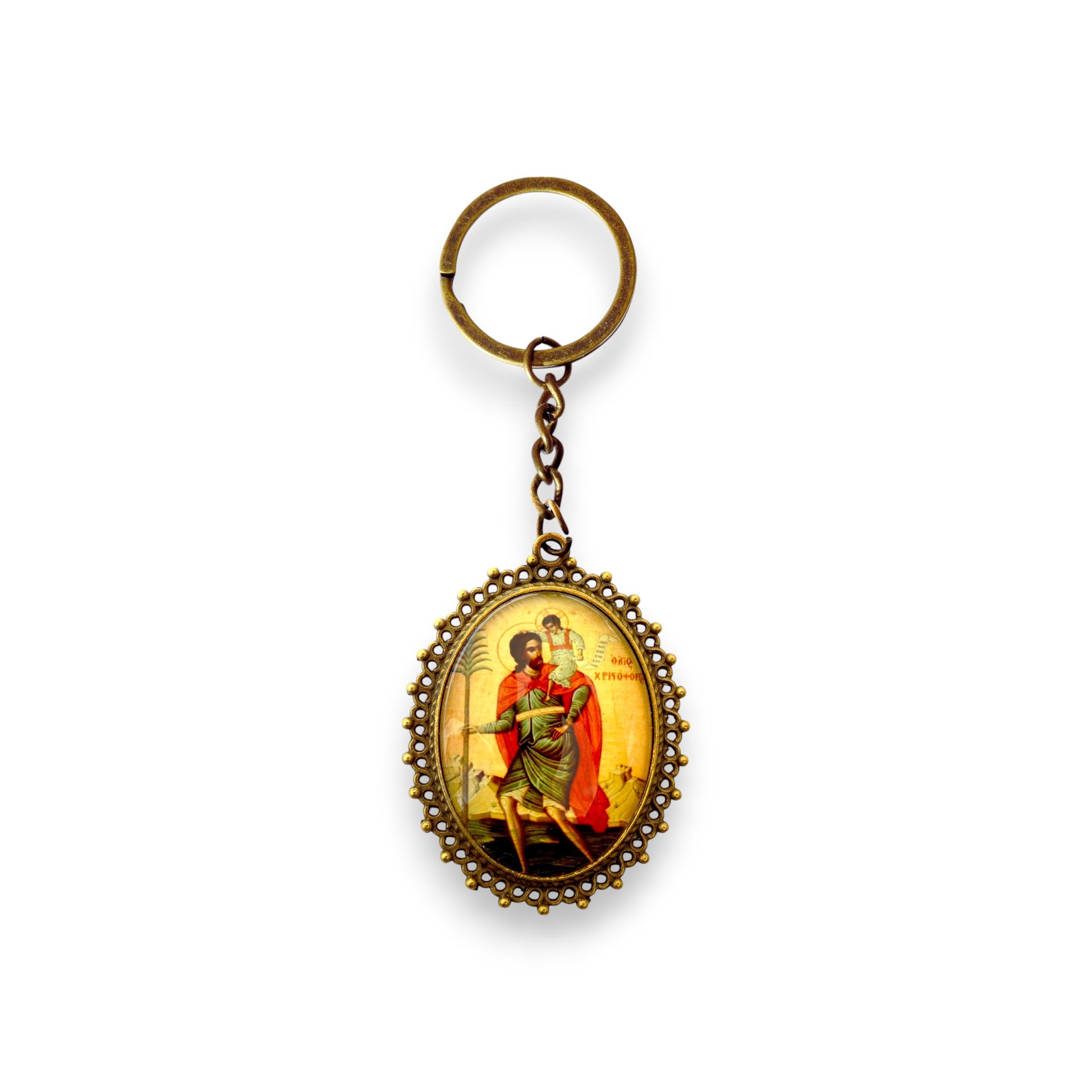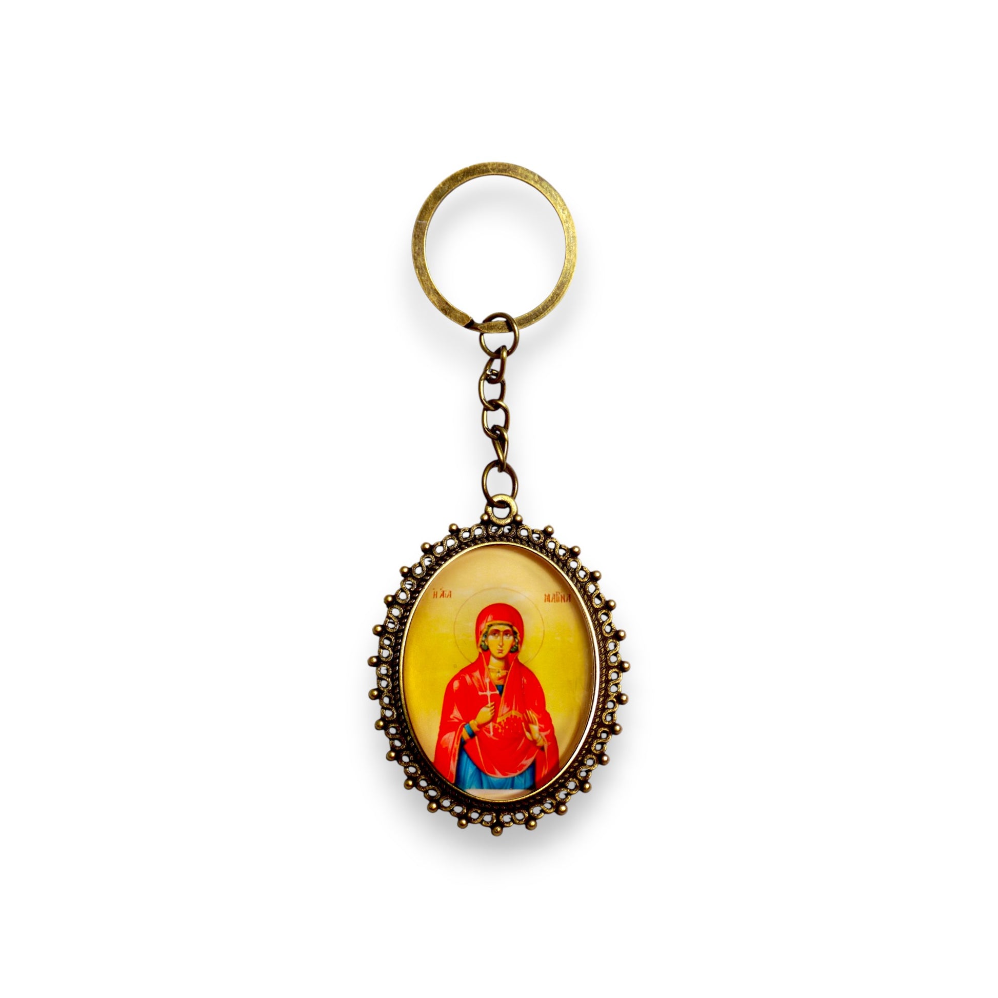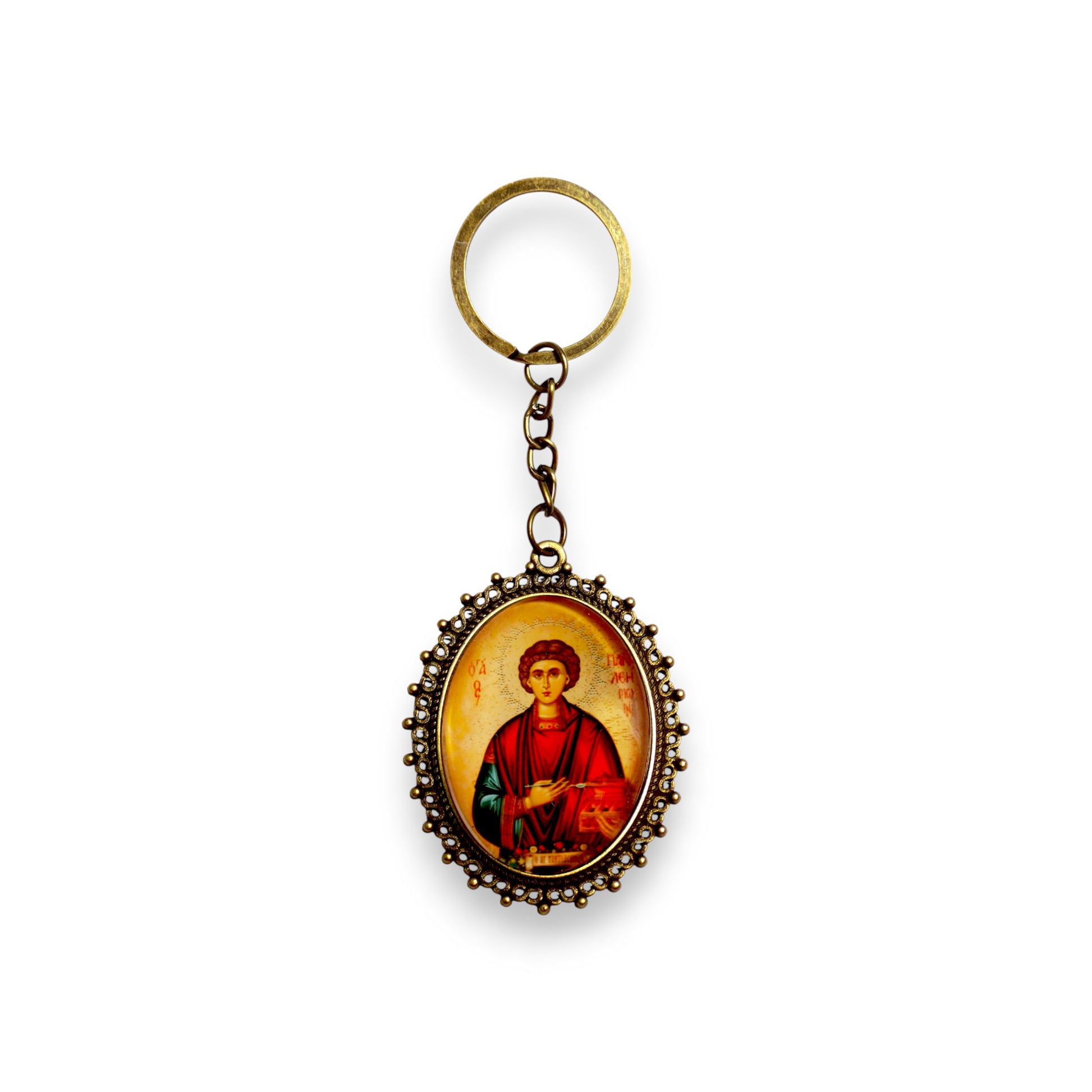 Μεταλλικό μπρελόκ με επικάλυψη ρητίνης και ζωντανή εκτύπωση Αγίων, ιδανικό για καθημερινή χρήση και ως μικρό ευλογημένο δώρο.