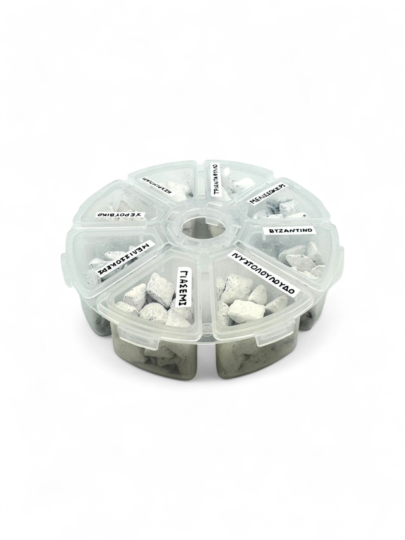 Κομψό σετ λιβανιών σε πρακτική συσκευασία με ξεχωριστές θήκες και ποικιλία αρωμάτων.