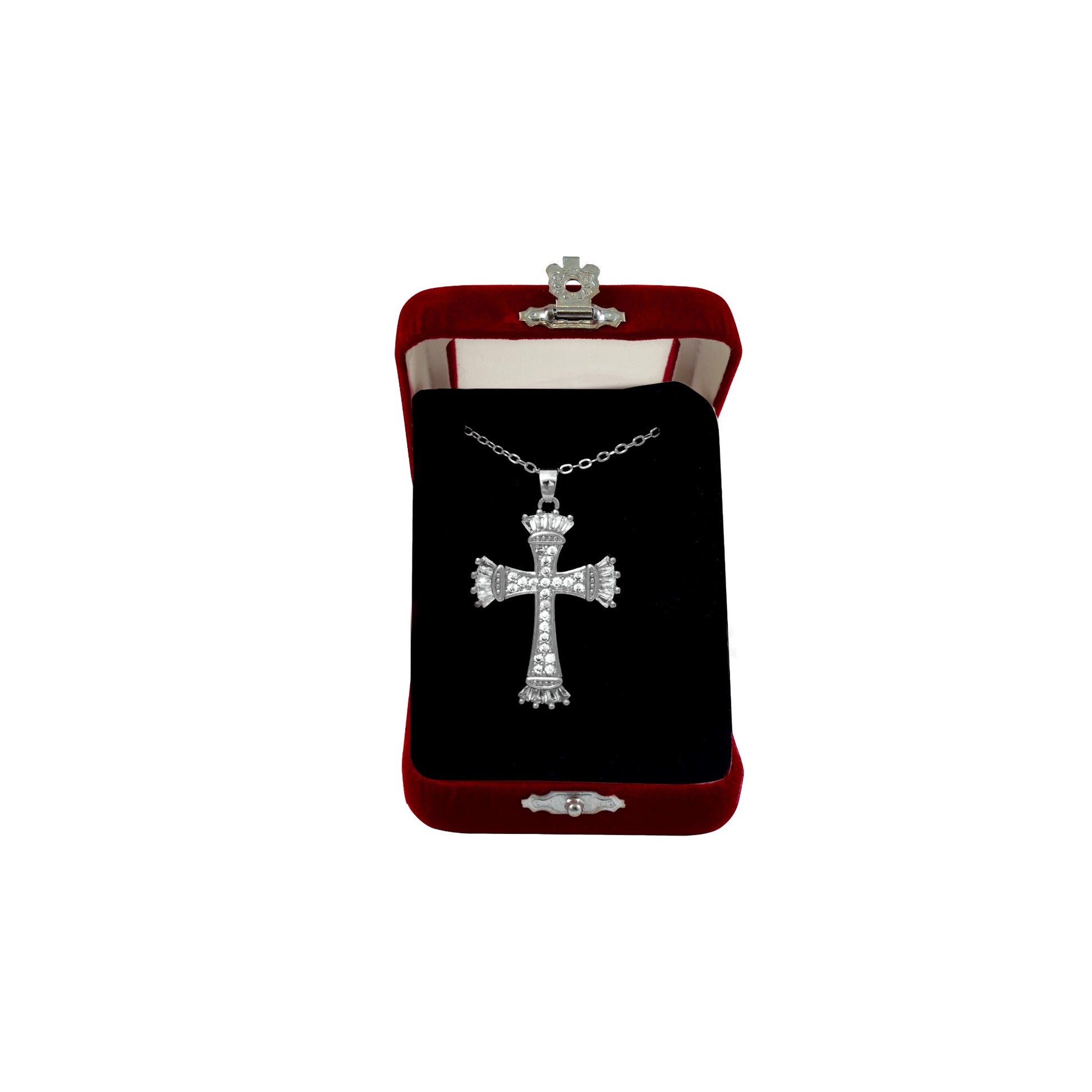 Εντυπωσιακός σταυρός λαιμού από ατσάλι , με διάφανες πέτρες σε δύο χρώματα για να διαλέξετε όποιο σας ταιριάζει.