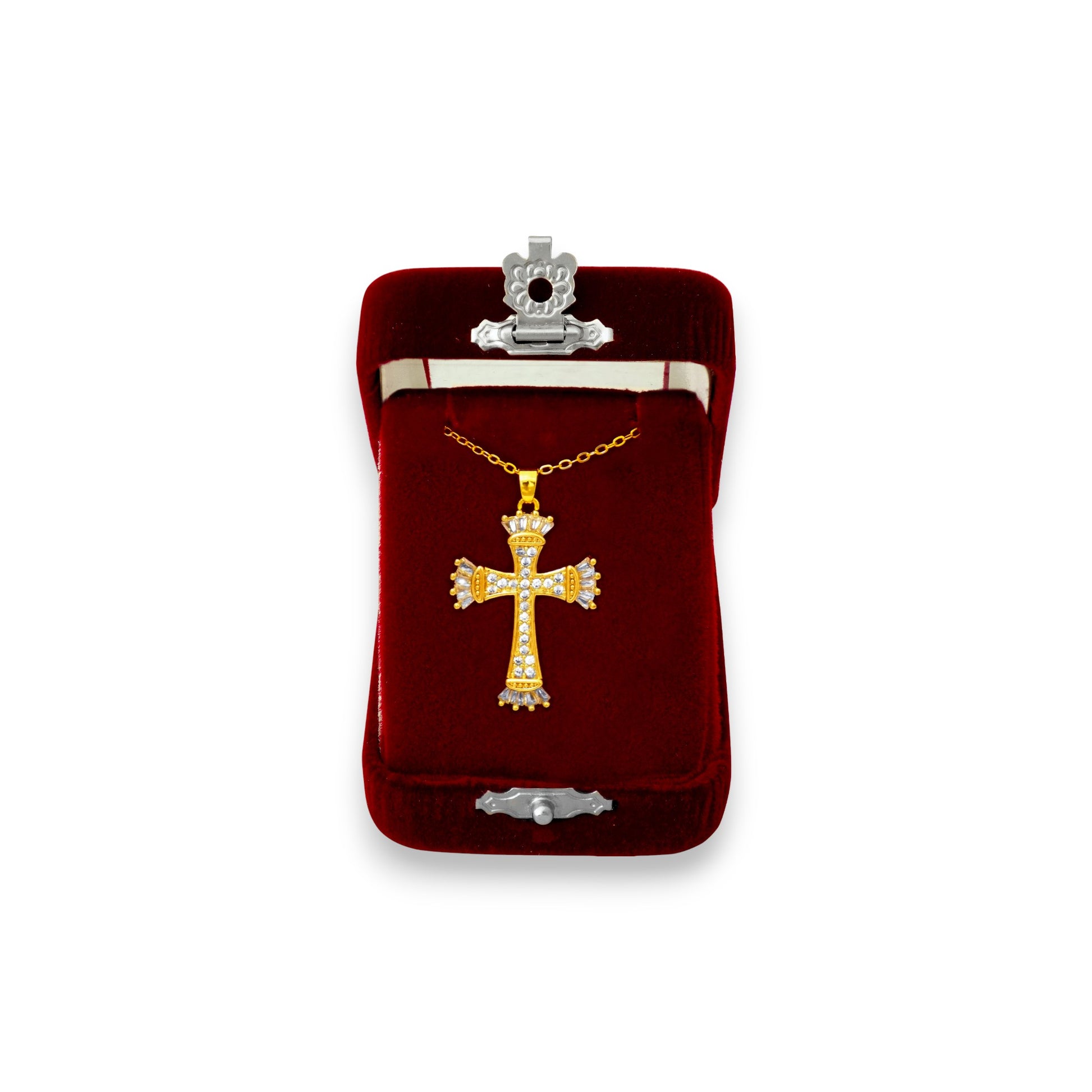 Ο σταυρός συνοδεύεται από ατσάλινο σταυρό λαιμού και αποτελεί ιδανική επιλογή για καθημερινή χρήση, για δώρο ευλάβειας ή ως συλλεκτικό εκκλησιαστικό κόσμημα.