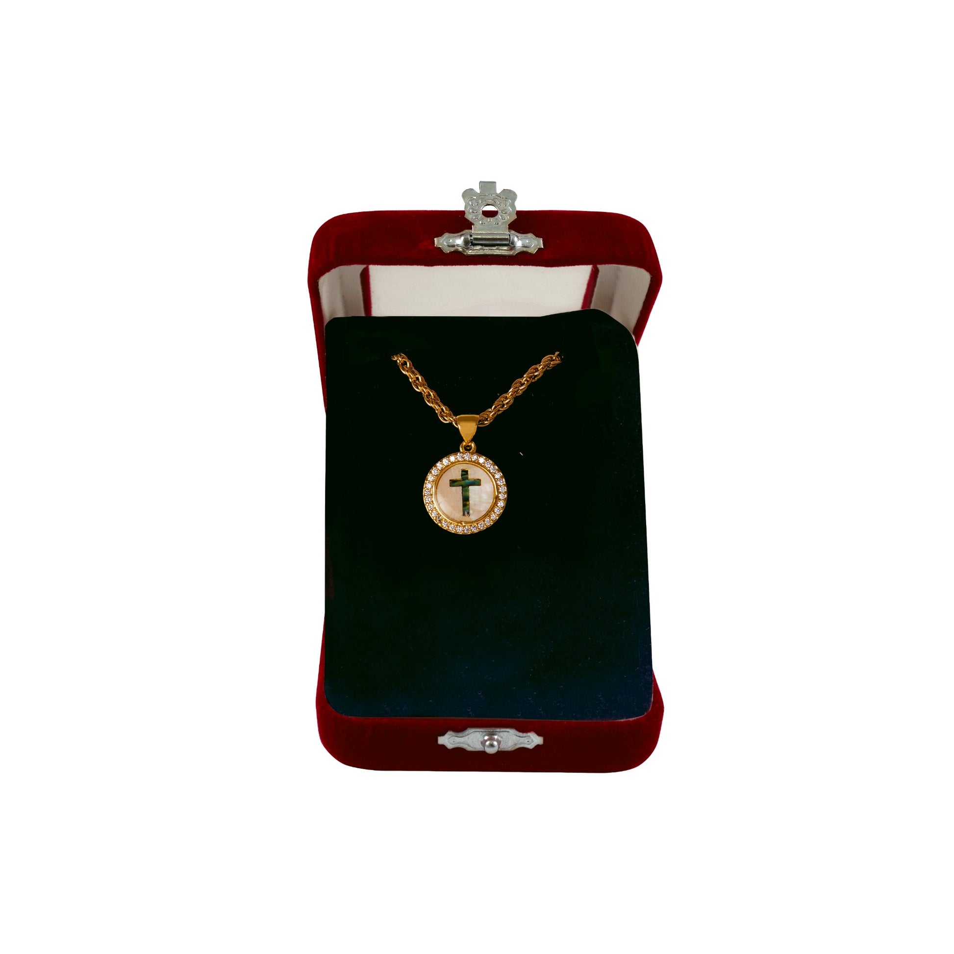 Ο σταυρός συνοδεύεται από ατσάλινο σταυρό λαιμού και αποτελεί ιδανική επιλογή για καθημερινή χρήση, για δώρο ευλάβειας ή ως συλλεκτικό εκκλησιαστικό κόσμημα.