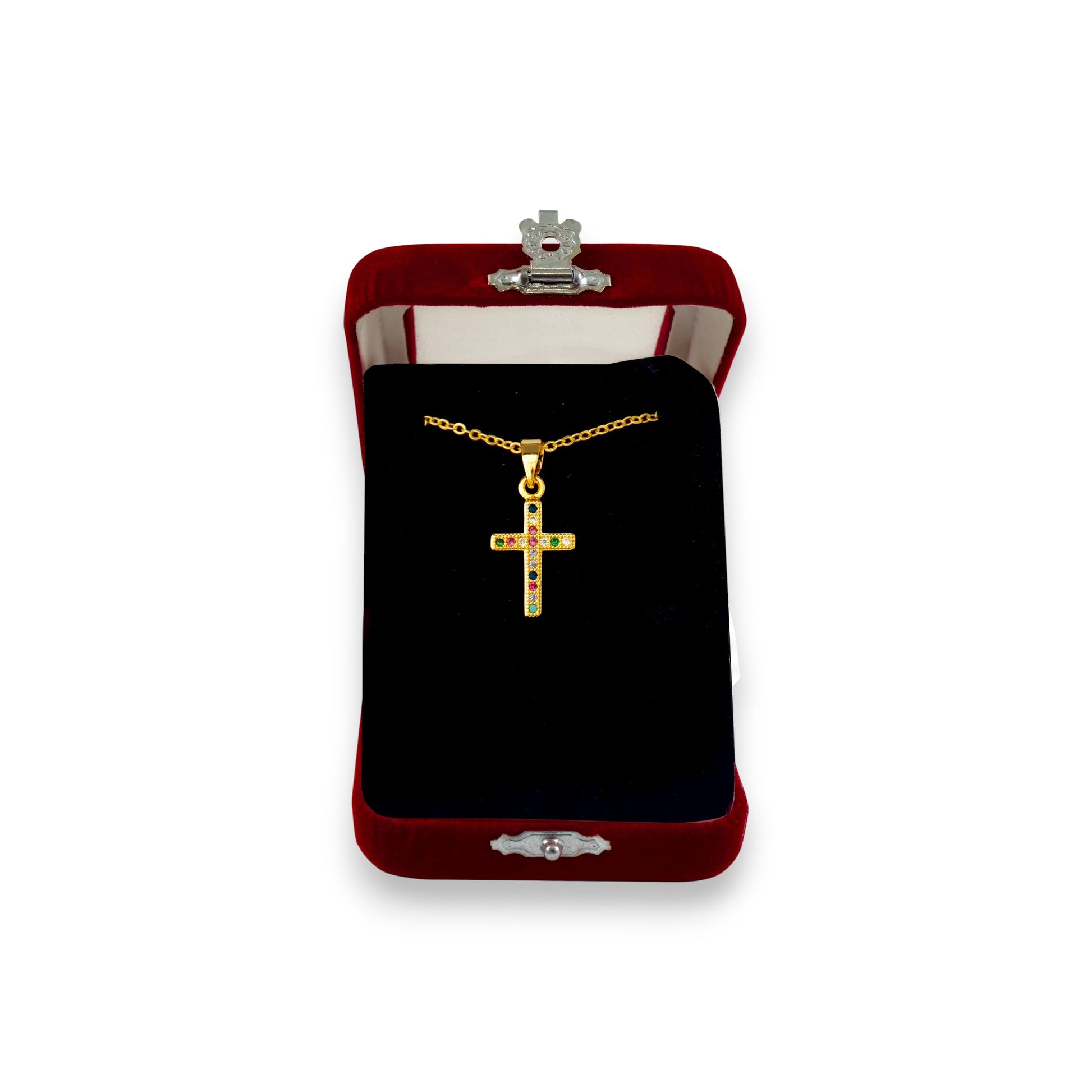 Σταυρός Λαιμού Ατσάλινος Ίσιος Χρωματιστές Πέτρες