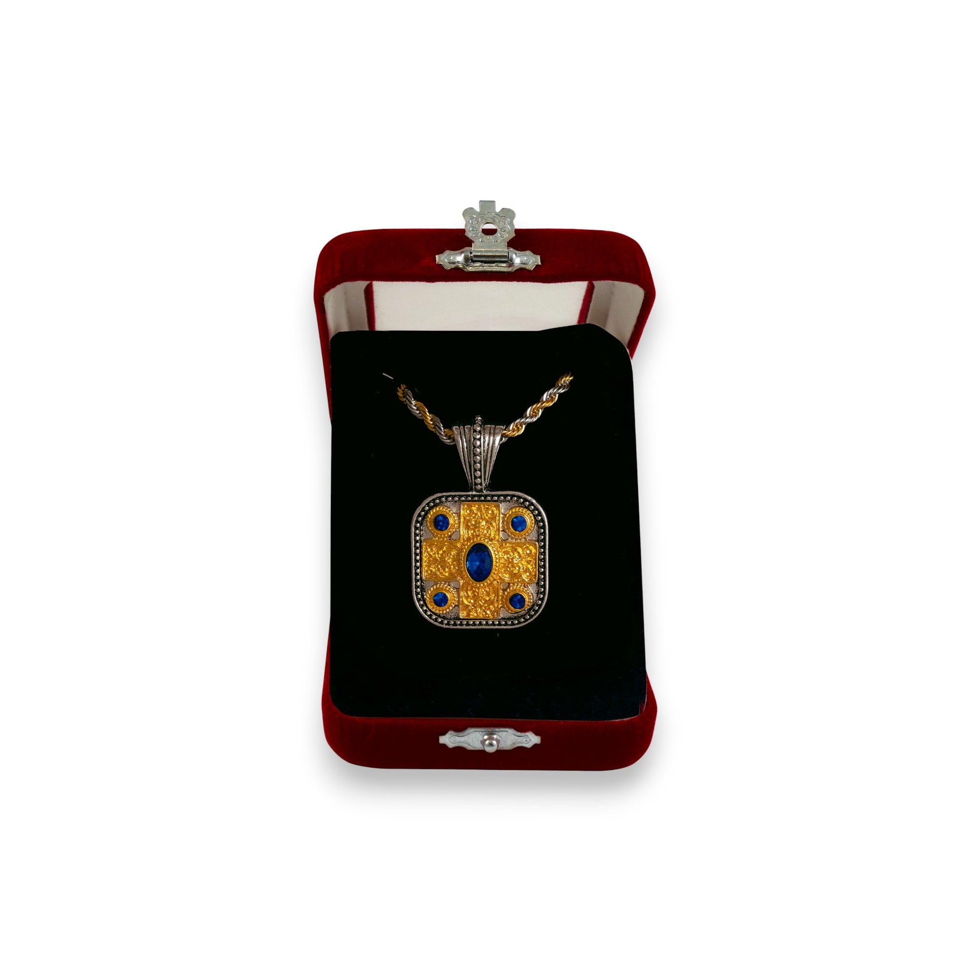 Ο σταυρός συνοδεύεται από ατσάλινο σταυρό λαιμού και αποτελεί ιδανική επιλογή για καθημερινή χρήση, για δώρο ευλάβειας ή ως συλλεκτικό εκκλησιαστικό κόσμημα.