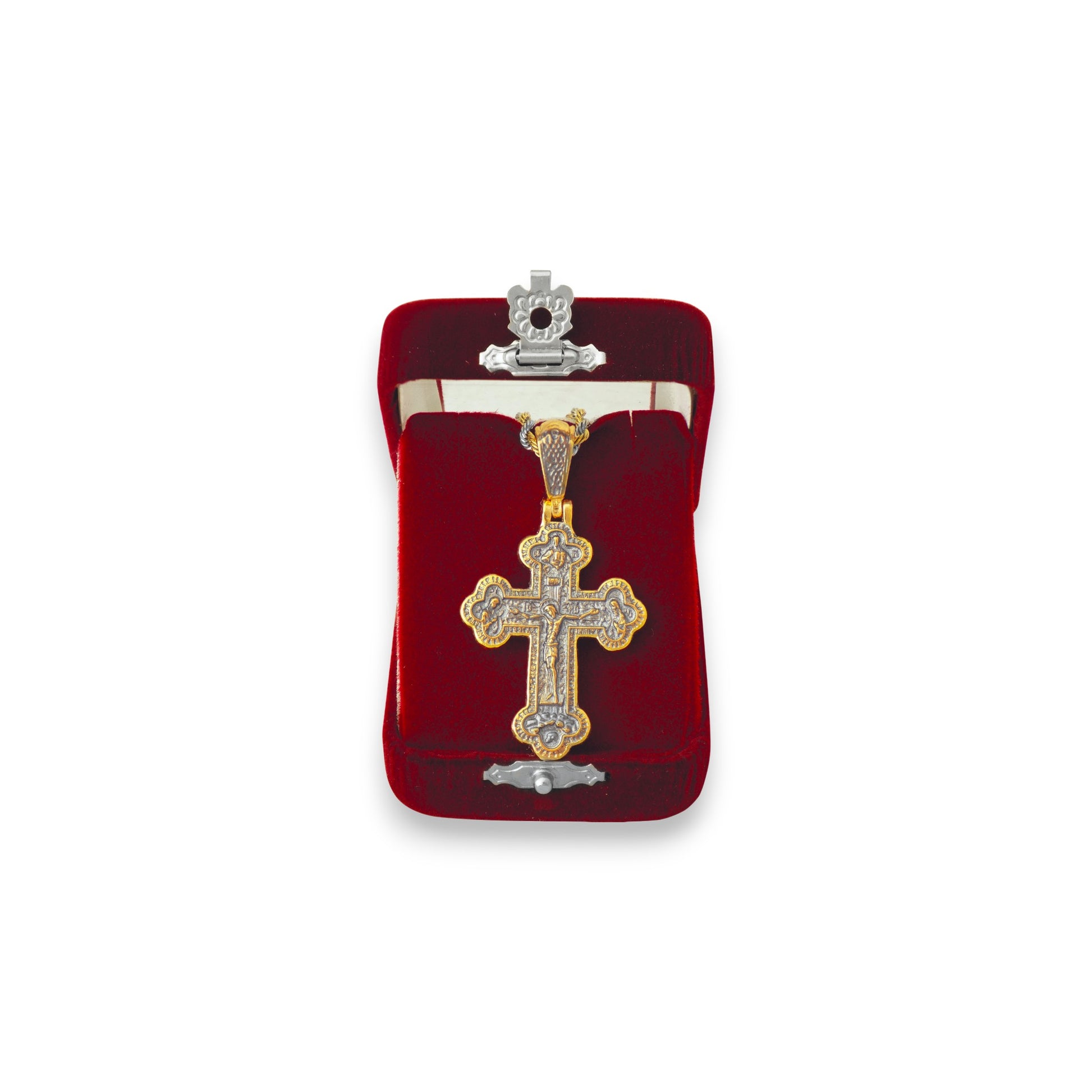 Εντυπωσιακός δίχρωμος σταυρός λαιμού από ζάμακ, εμπνευσμένος από την ελληνική ορθόδοξη παράδοση.