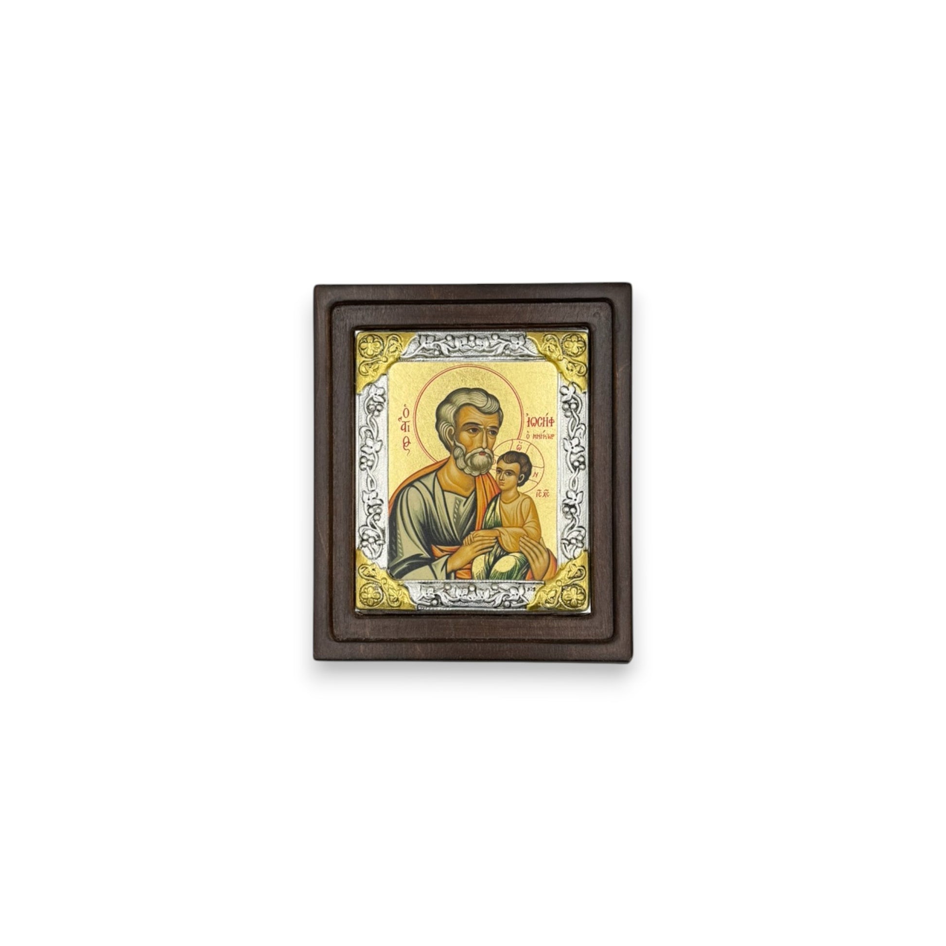 Άγιος Ιωσήφ ο Μνήστωρ – Ασημένια Εικόνα σε Ξύλο με Επιχρύσωση Τετράγωνη ( Άγιο Όρος )