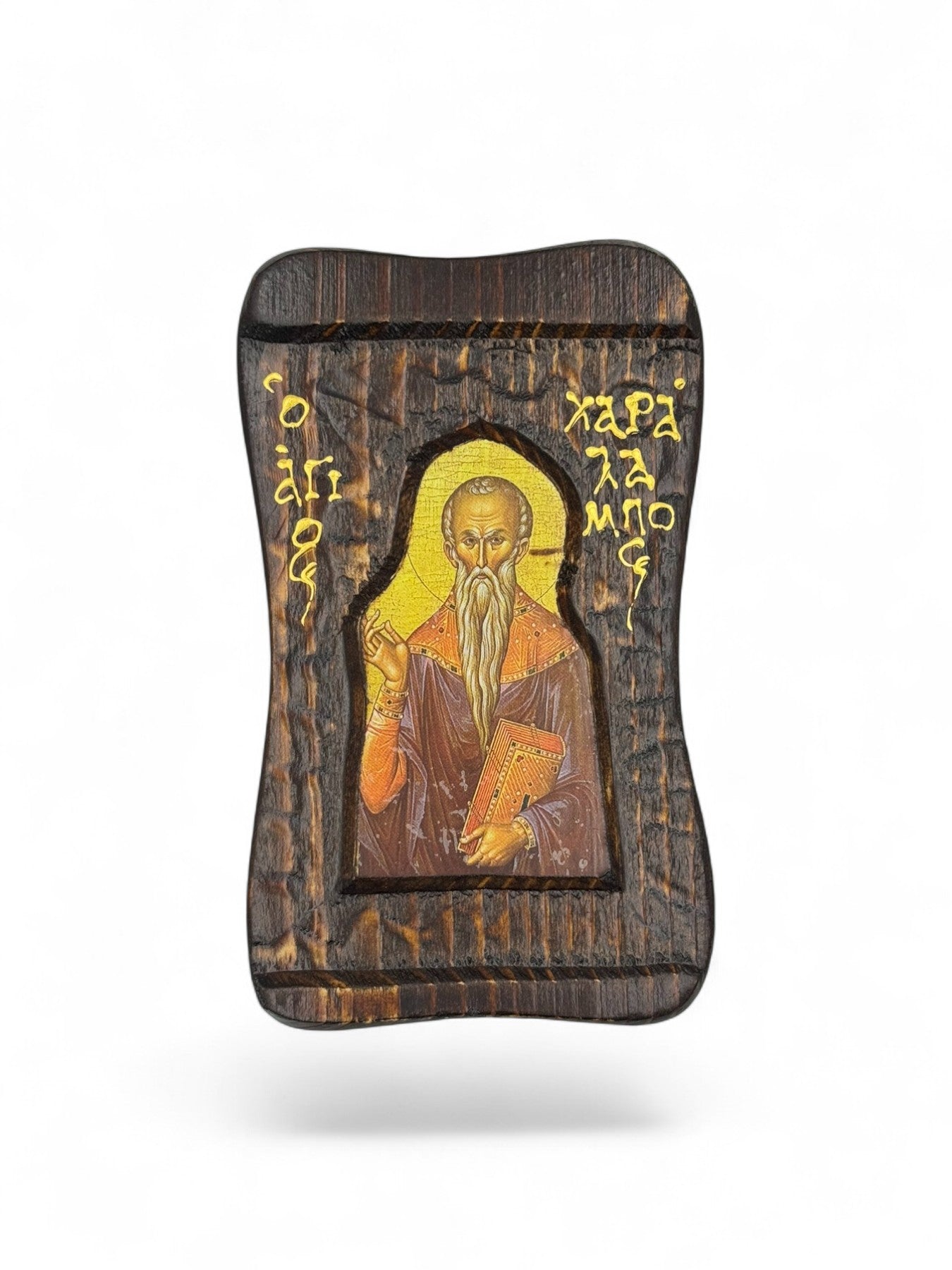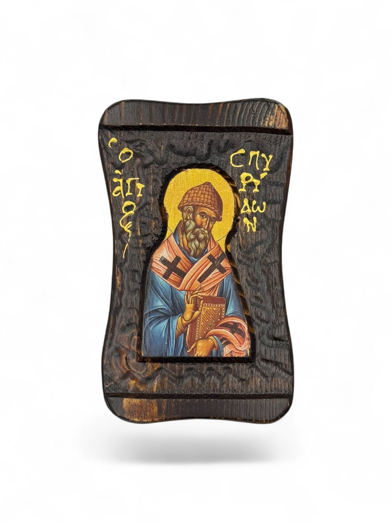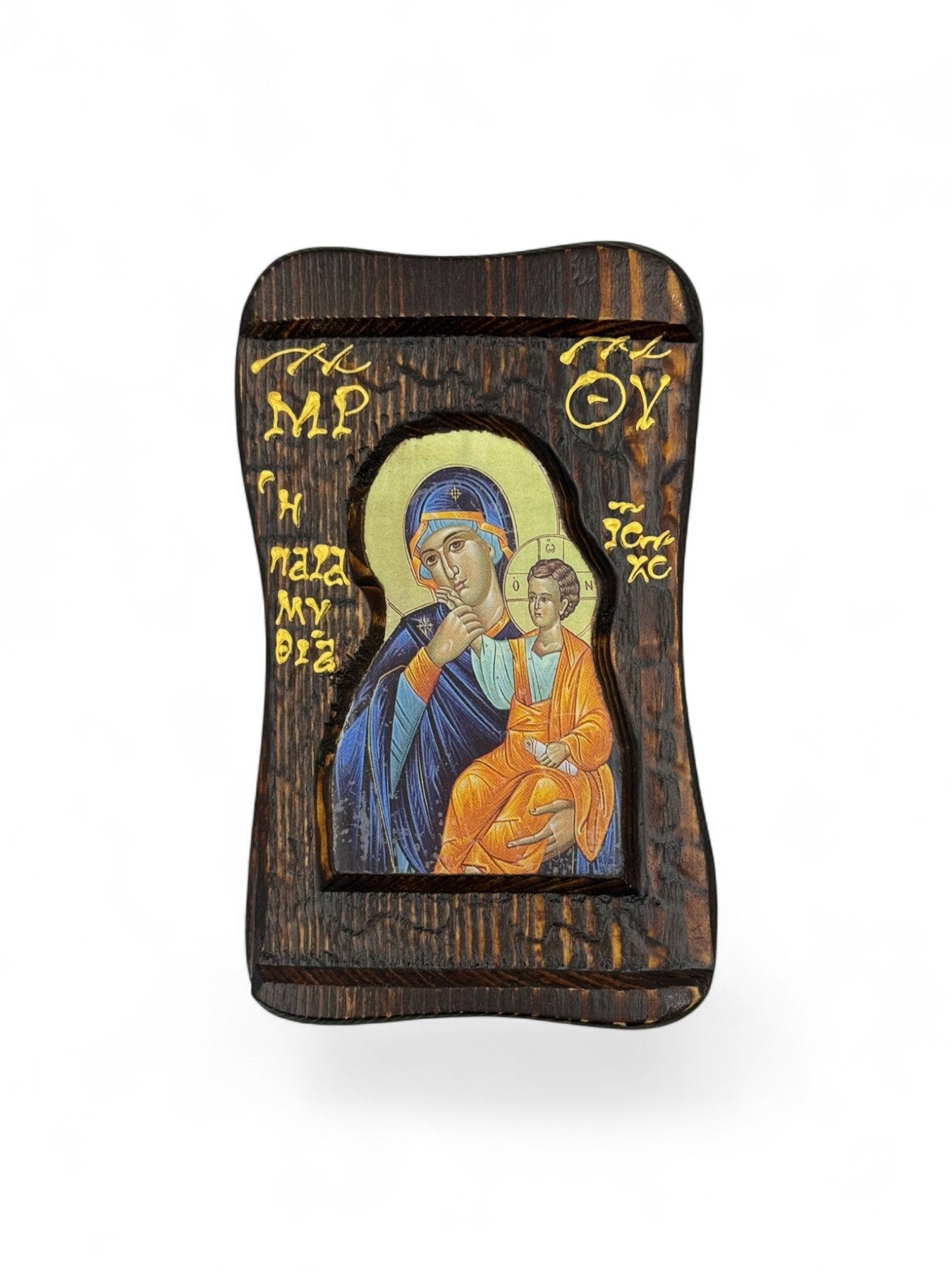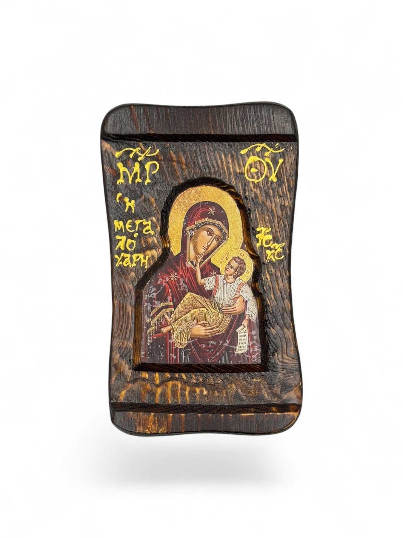 Εικόνα, επάνω σε φυσικό ξύλο έλατο, με παραδοσιακή βυζαντινή τεχνοτροπία.