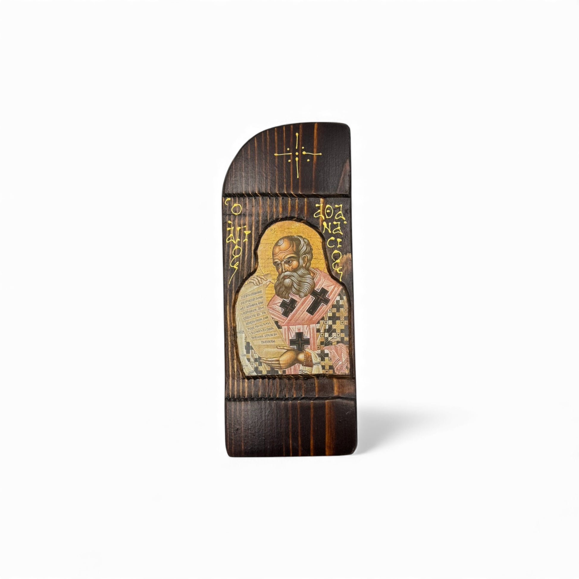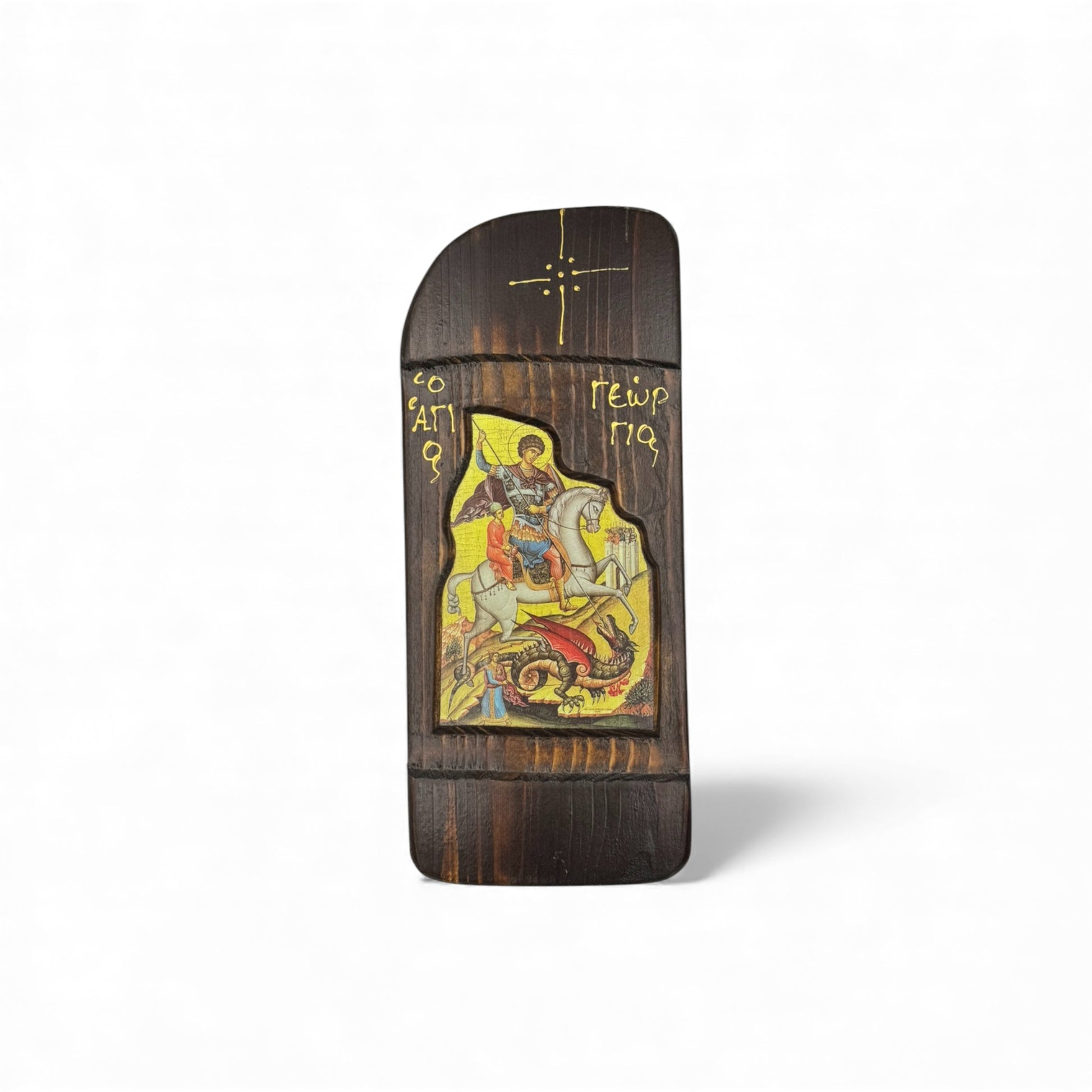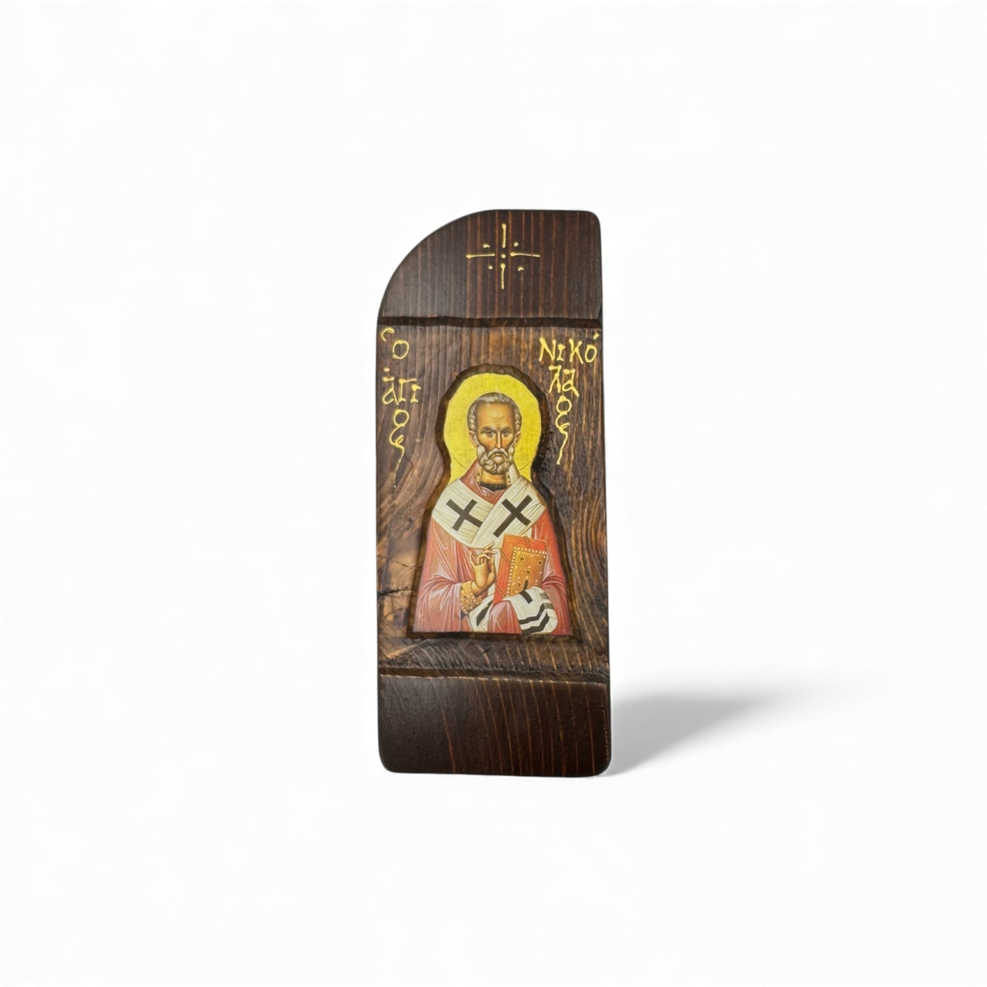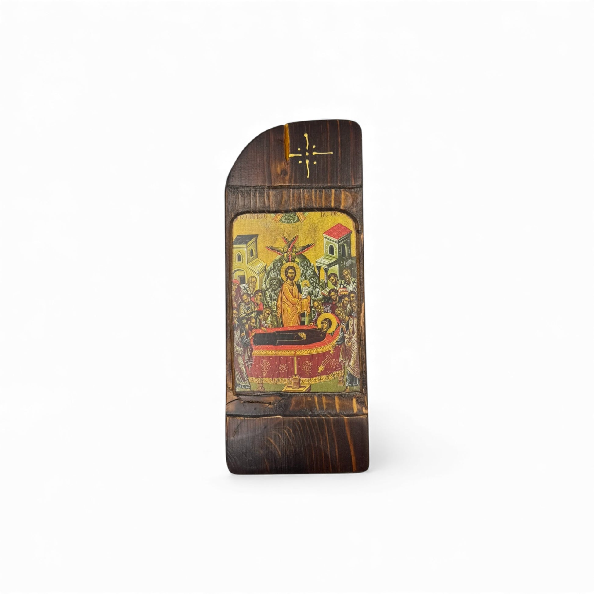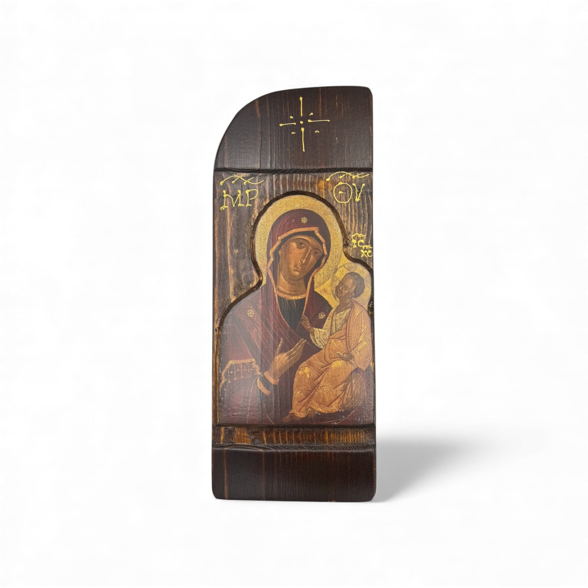 Εικόνα, επάνω σε φυσικό ξύλο έλατο, με παραδοσιακή βυζαντινή τεχνοτροπία.
