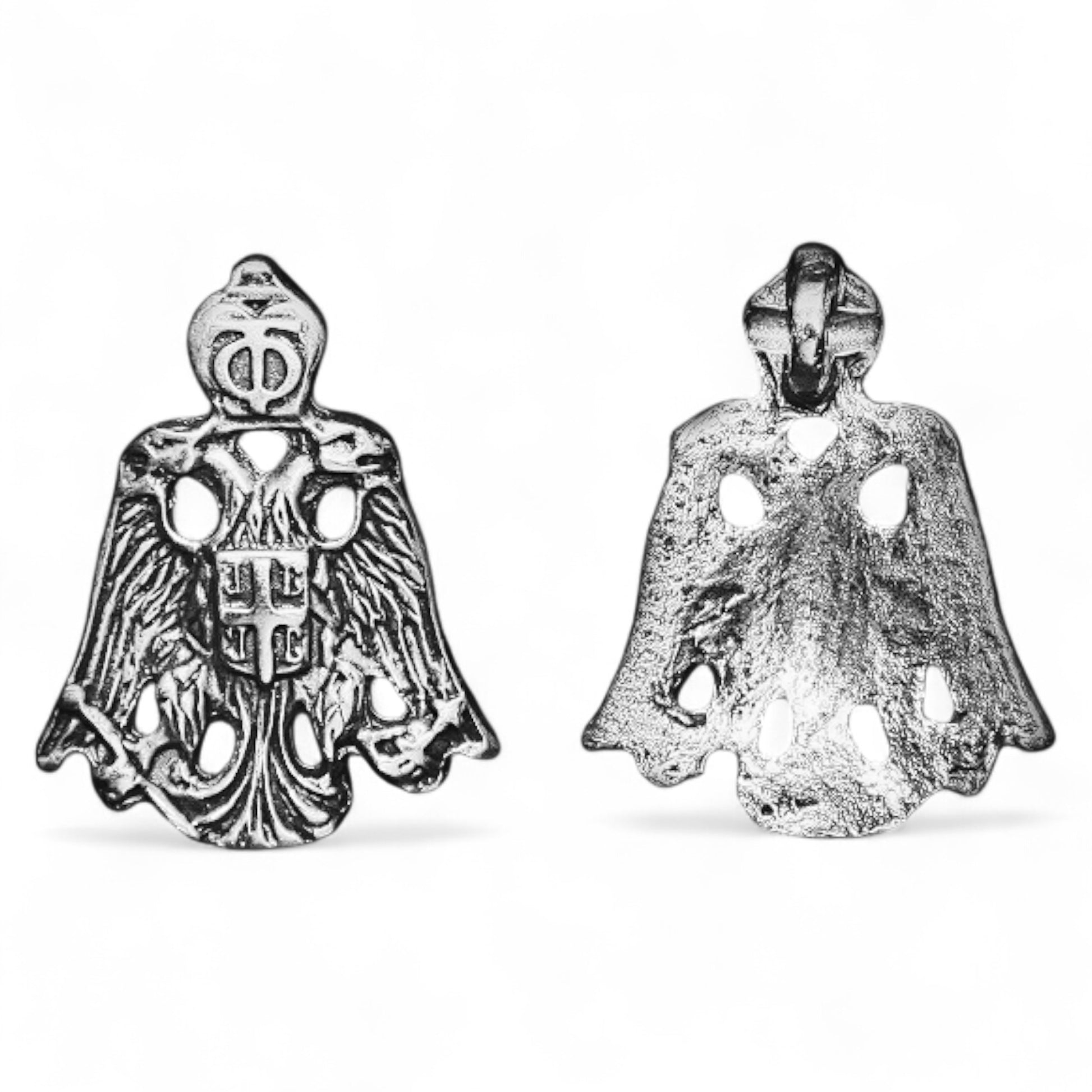 Επάργυρο χειροποίητο μενταγιόν λαιμού με τον Δικέφαλο Βυζαντινό Αετό.