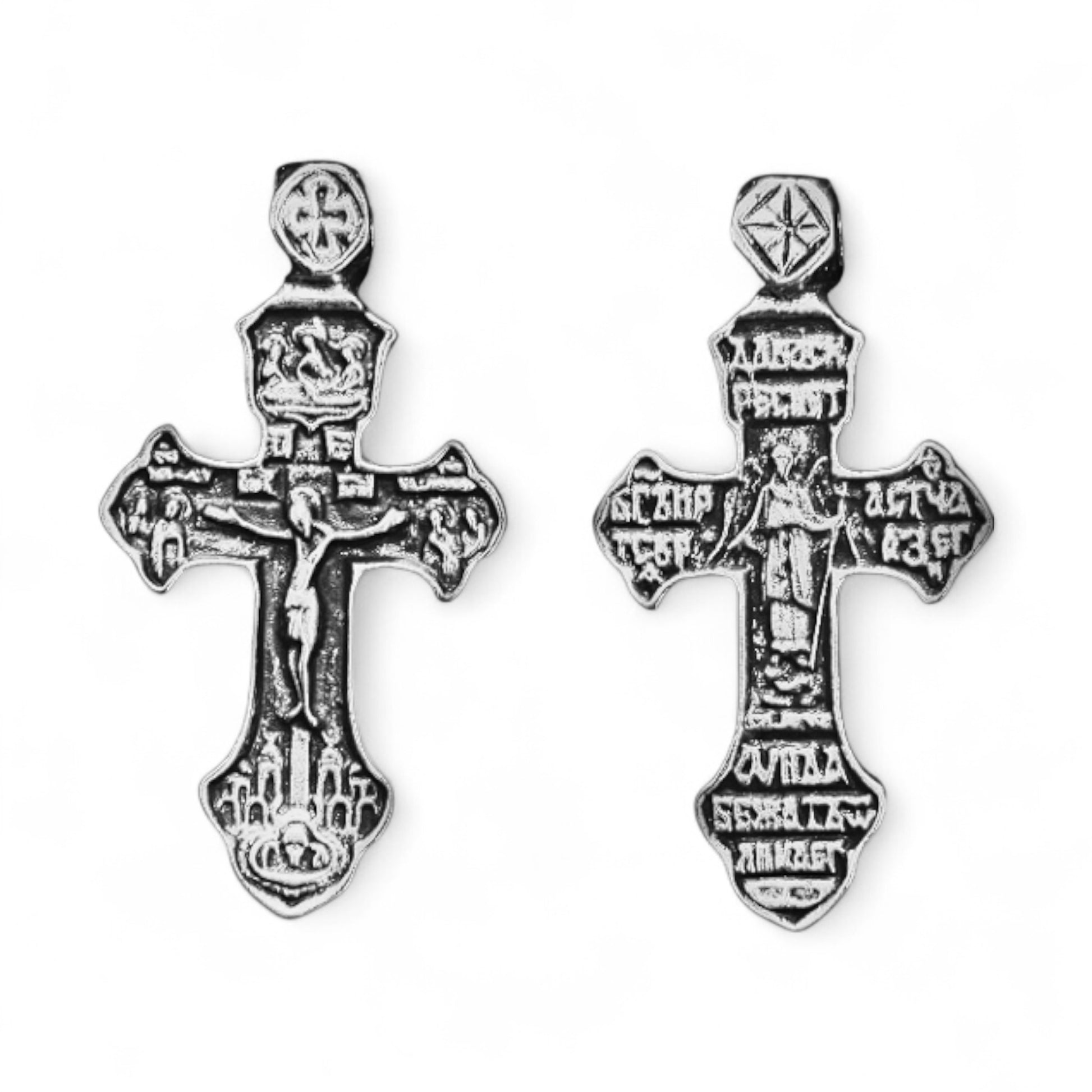 Επάργυρος Κρεμαστός Σταυρός Λαιμού Εσταυρωμένος / Αρχάγγελος Μιχαήλ 4.5×2.4 cm