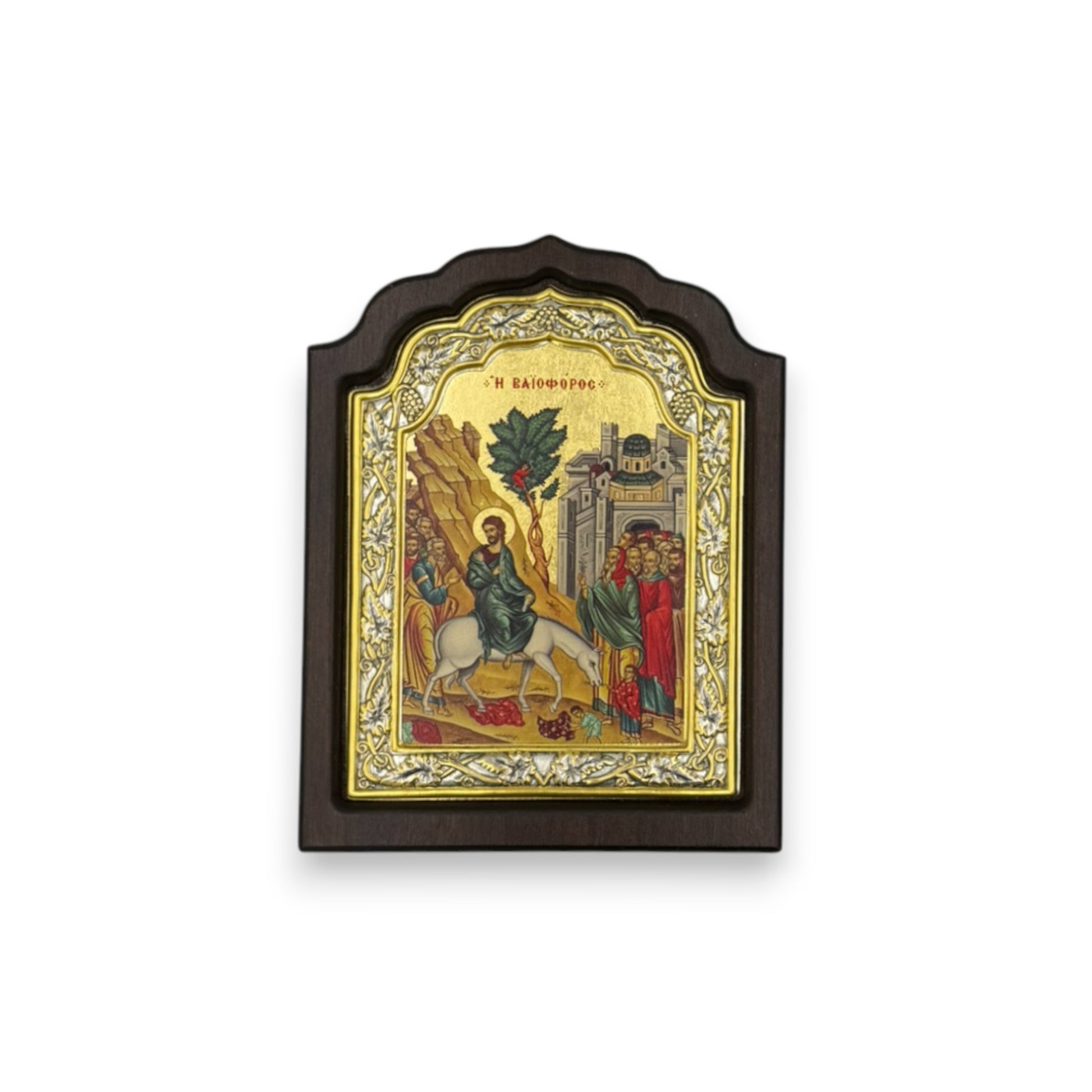 Η Βαϊοφόρος – Ασημένια Εικόνα σε Ξύλο με Επιχρύσωση ( Άγιο Όρος )