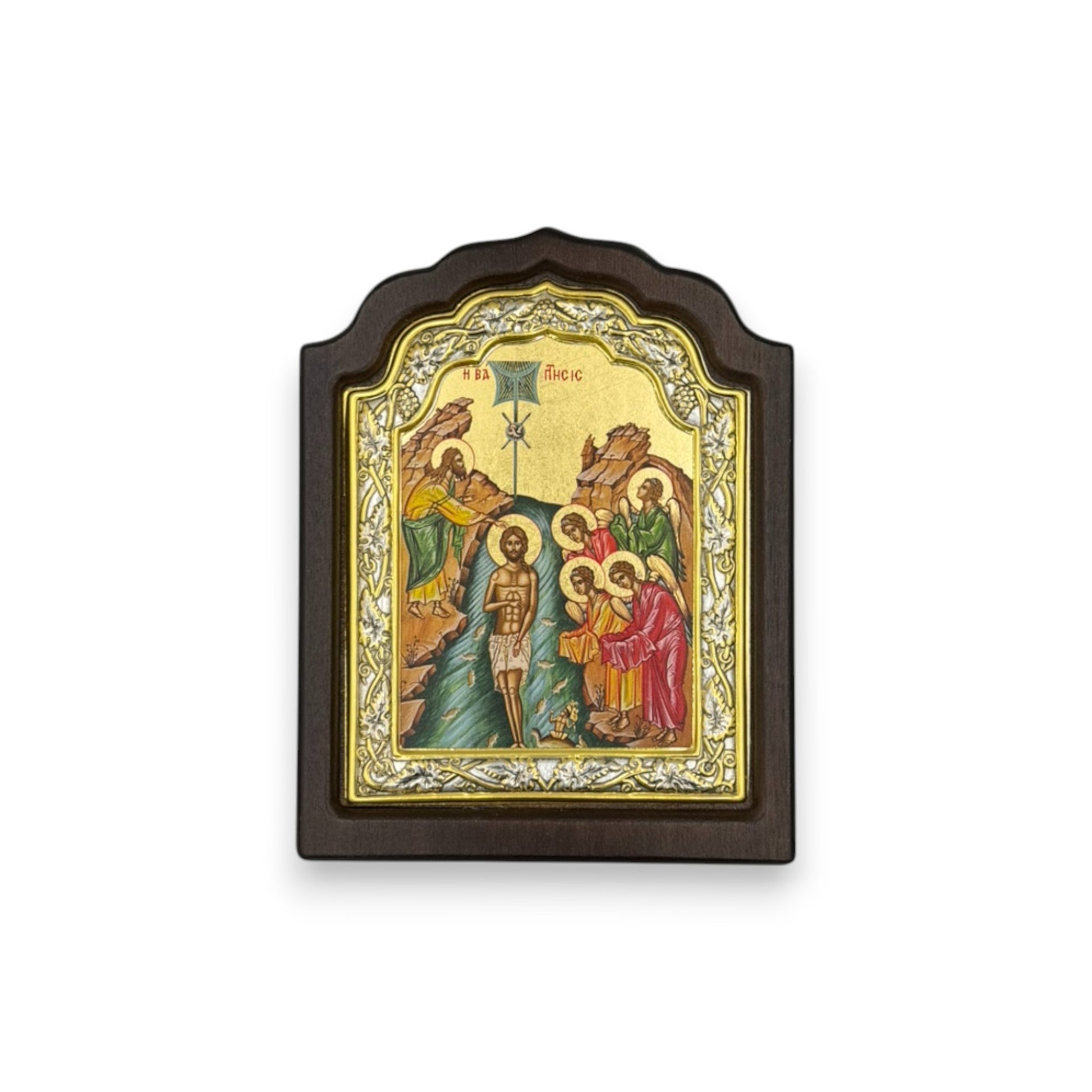Η Βάπτισης – Ασημένια Εικόνα σε Ξύλο με Επιχρύσωση ( Άγιο Όρος )