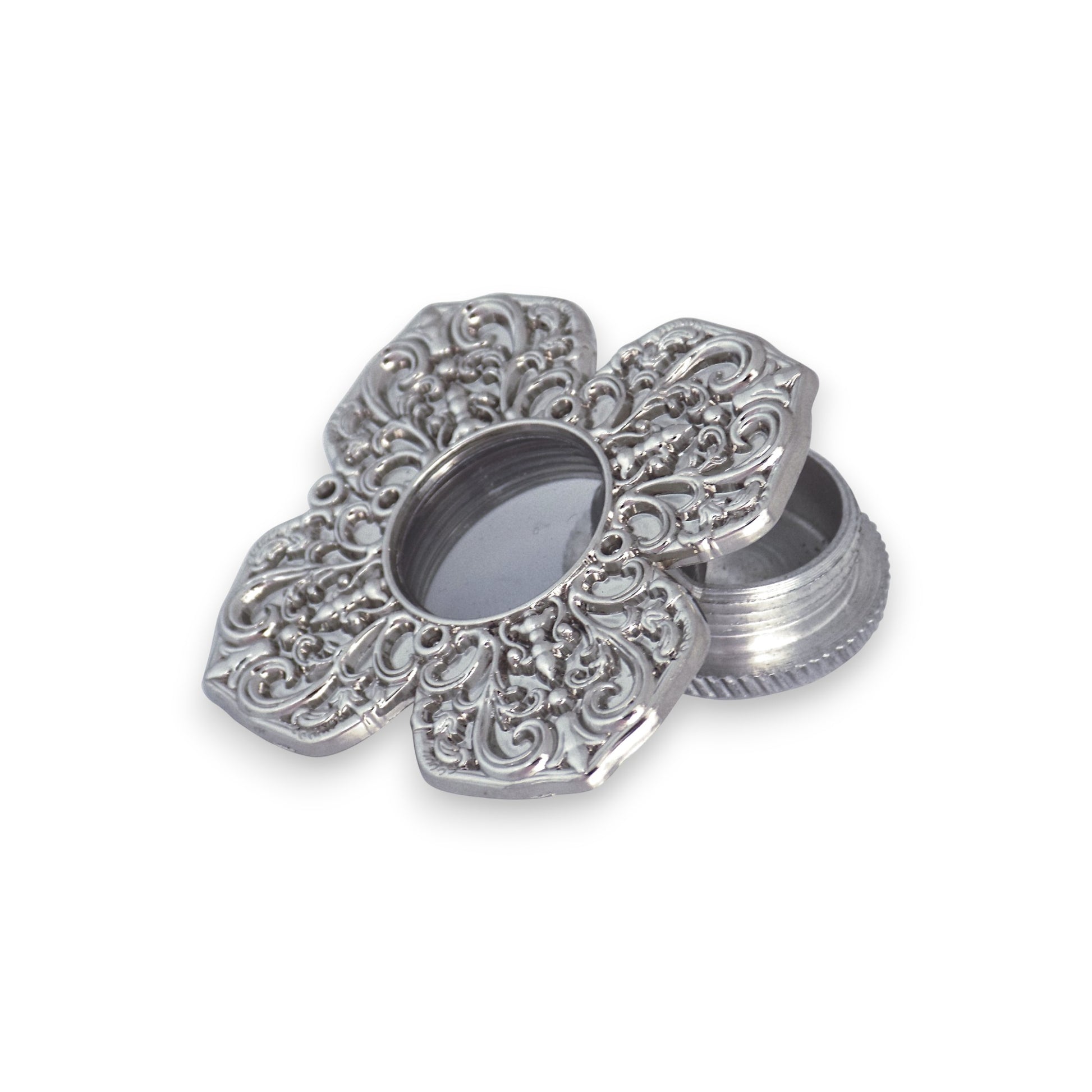 Μεταλλική βιδωτή λειψανοθήκη, κατάλληλη για την ασφαλή τοποθέτηση και φύλαξη μικρών λειψάνων ή ευλογιών.