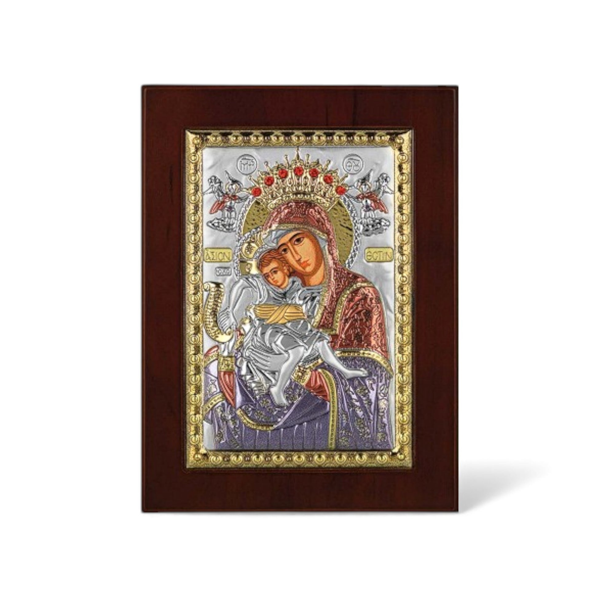 Παναγία Άξιον Εστί - Ασημένια Εικόνα Τετράγωνη Σμάλτο