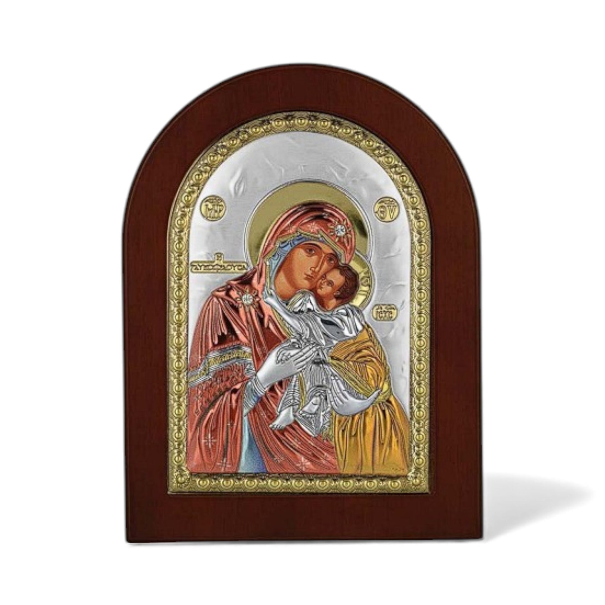 Ασημένια εικόνα Παναγία η Γλυκοφιλούσα με όμορφο ξύλινο πλαίσιο.