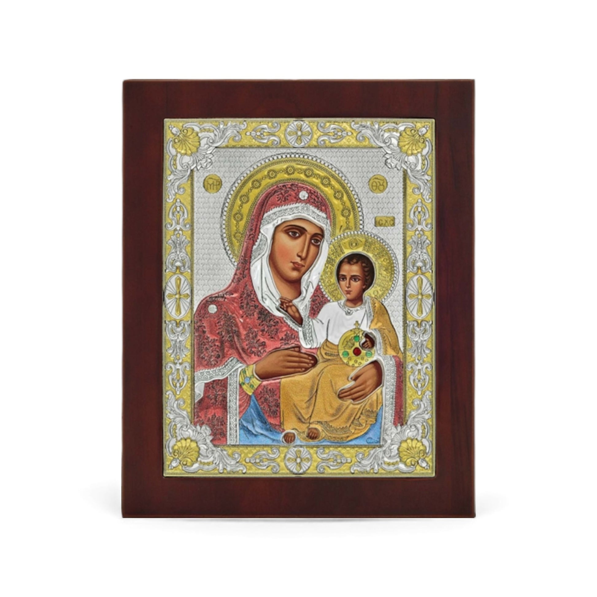Ασημένια εικόνα της Παναγίας Ιεροσολυμίτισσας με όμορφο ξύλινο πλαίσιο.