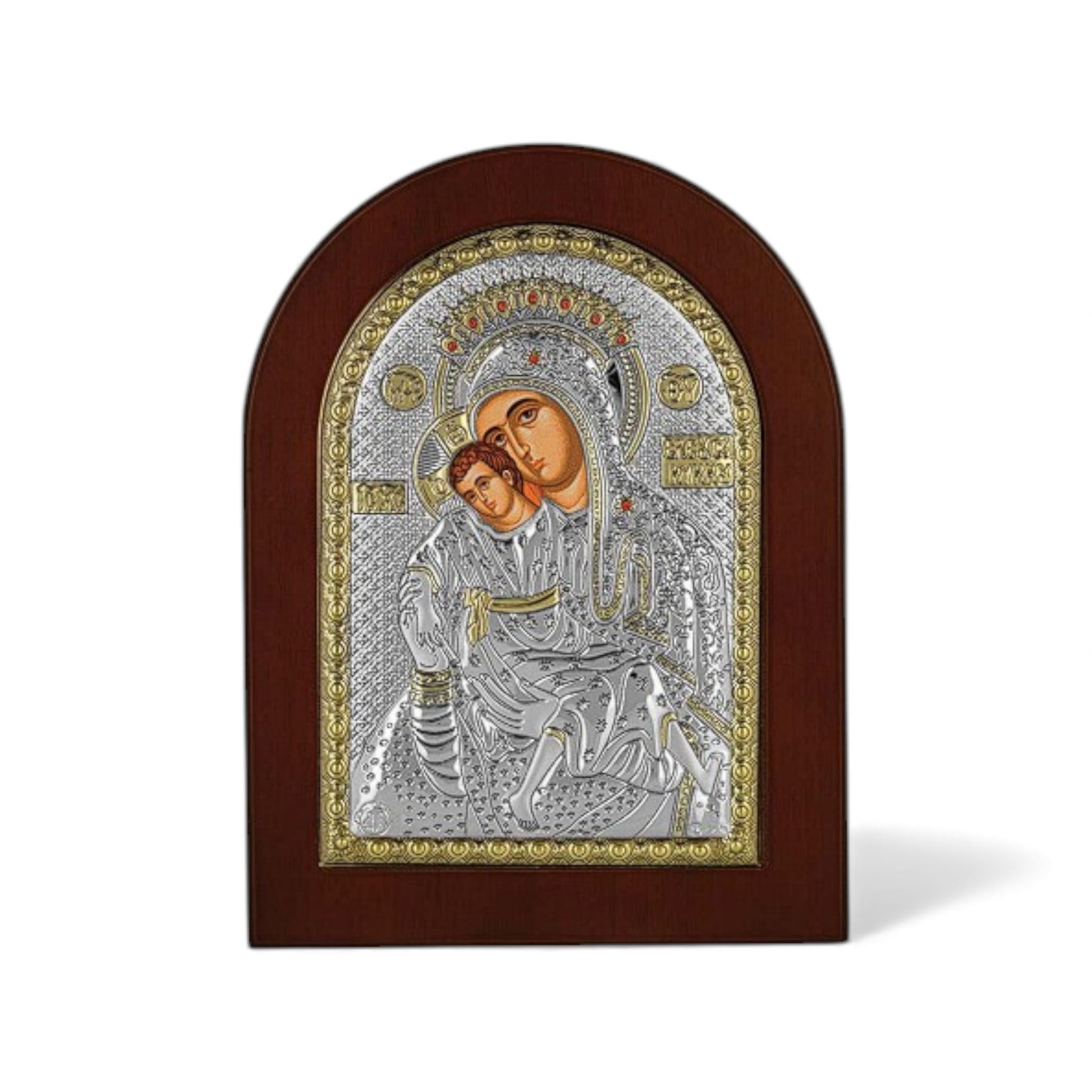 Ασημένια εικόνα Παναγία του Κύκκου με όμορφο ξύλινο πλαίσιο.