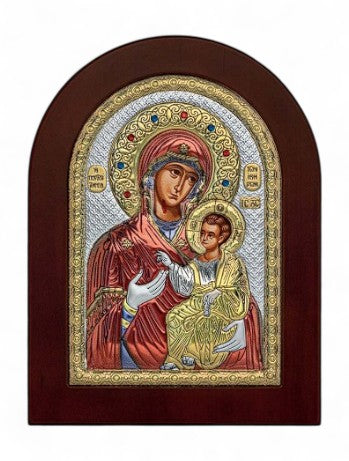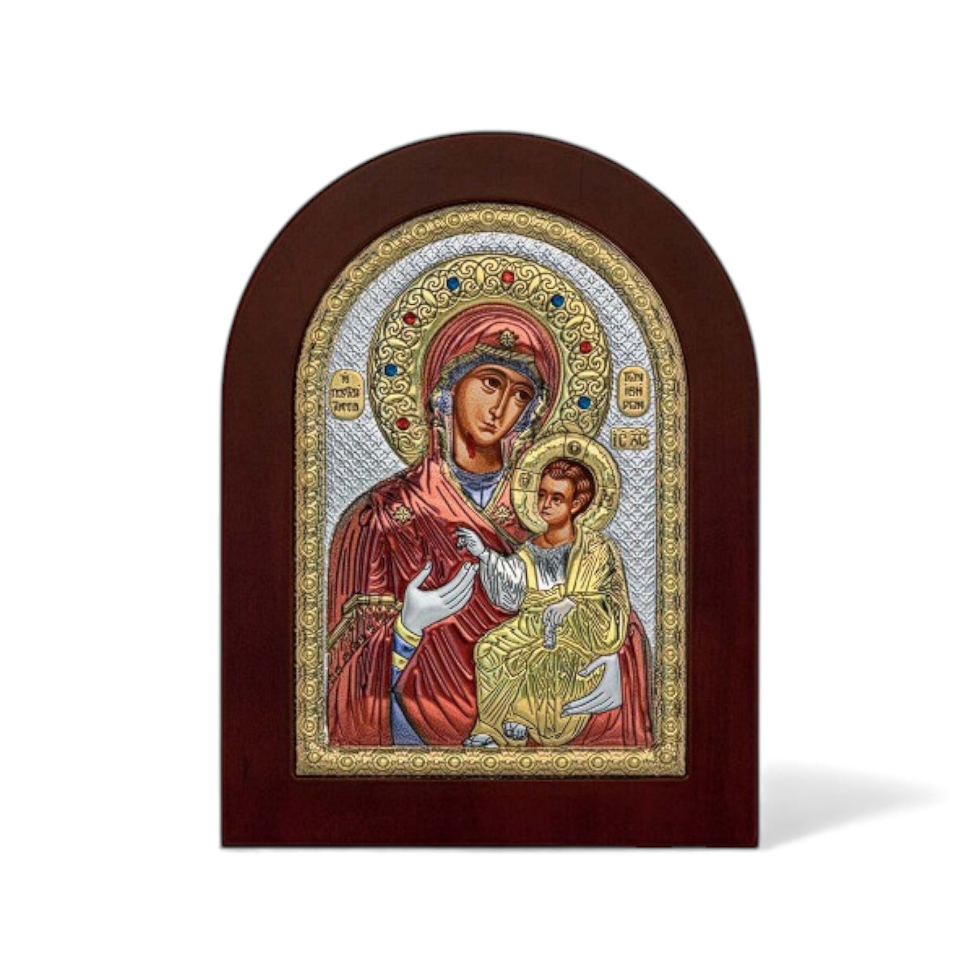 Ασημένια εικόνα Παναγία η Πορταΐτισσα με όμορφο ξύλινο πλαίσιο.