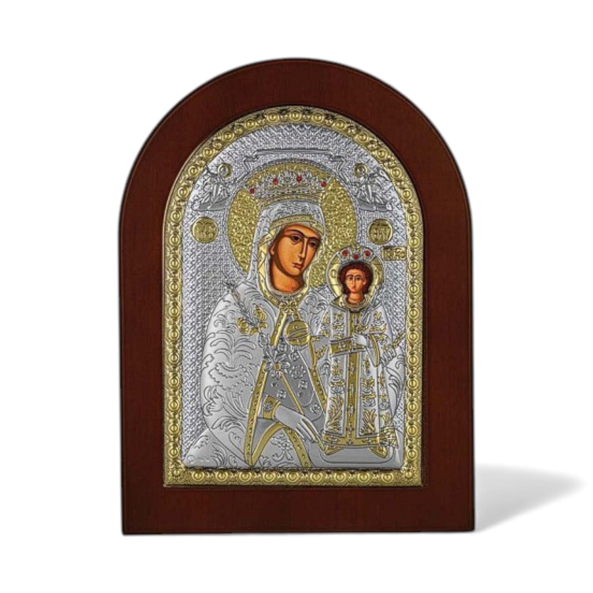 Ασημένια εικόνα Παναγία Ρόδο το Αμάραντο με όμορφο ξύλινο πλαίσιο.