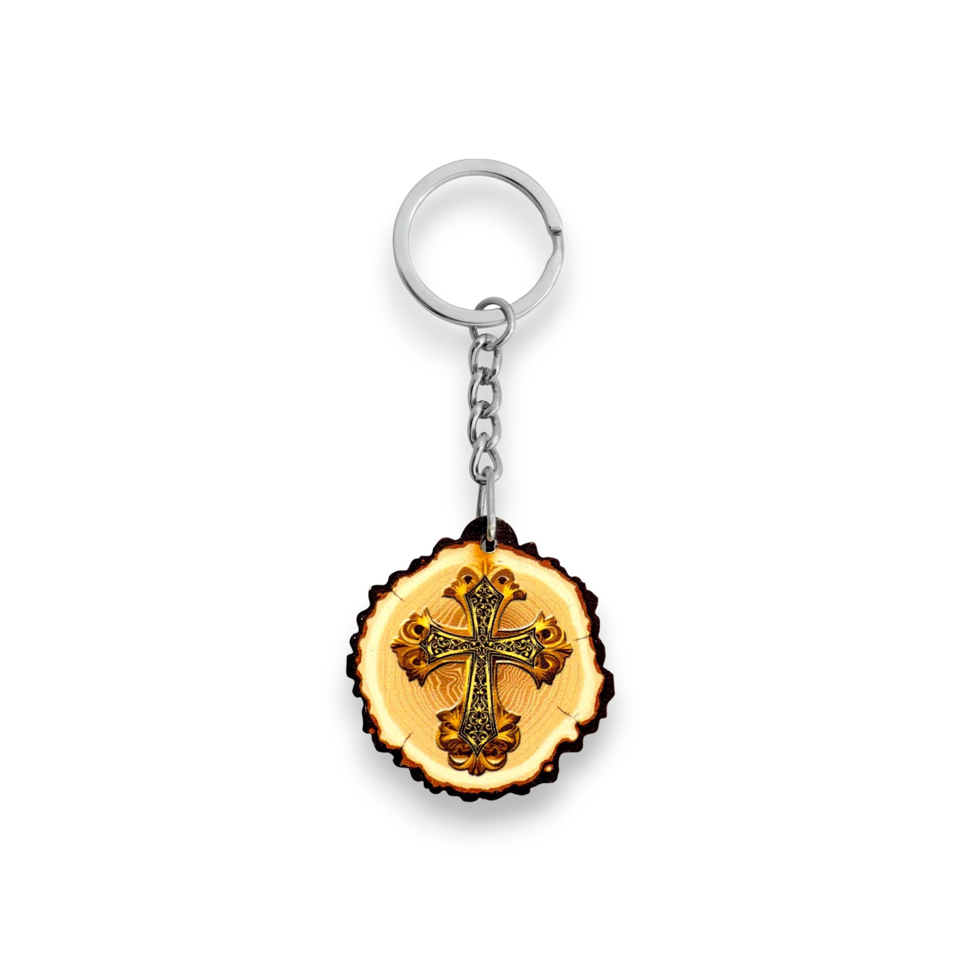 Μπρελόκ Ξύλινο Με Παναγία & Σταυρό